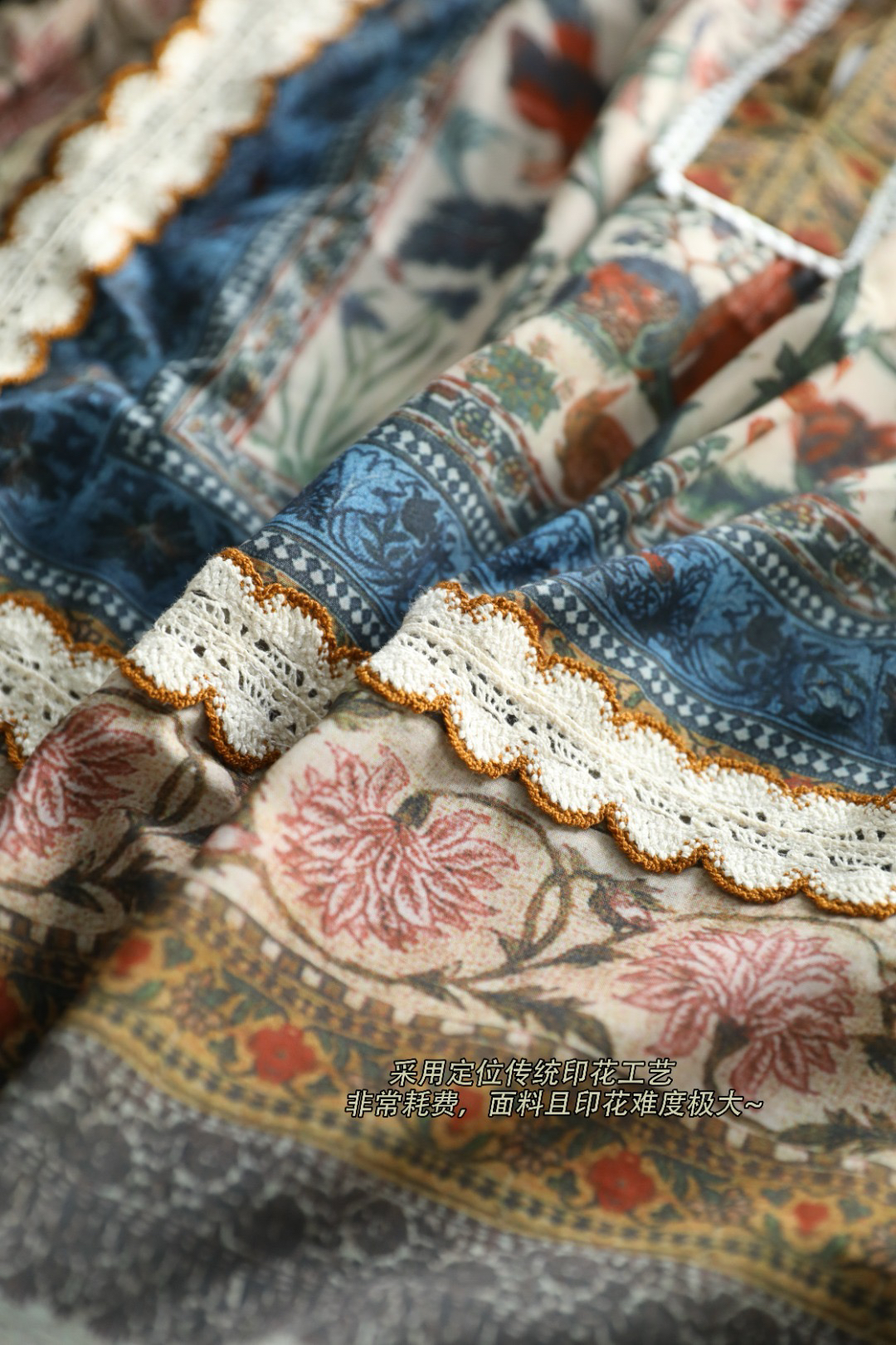 采用定位传统印花工艺,非常耗费,面料且印花难度极大~