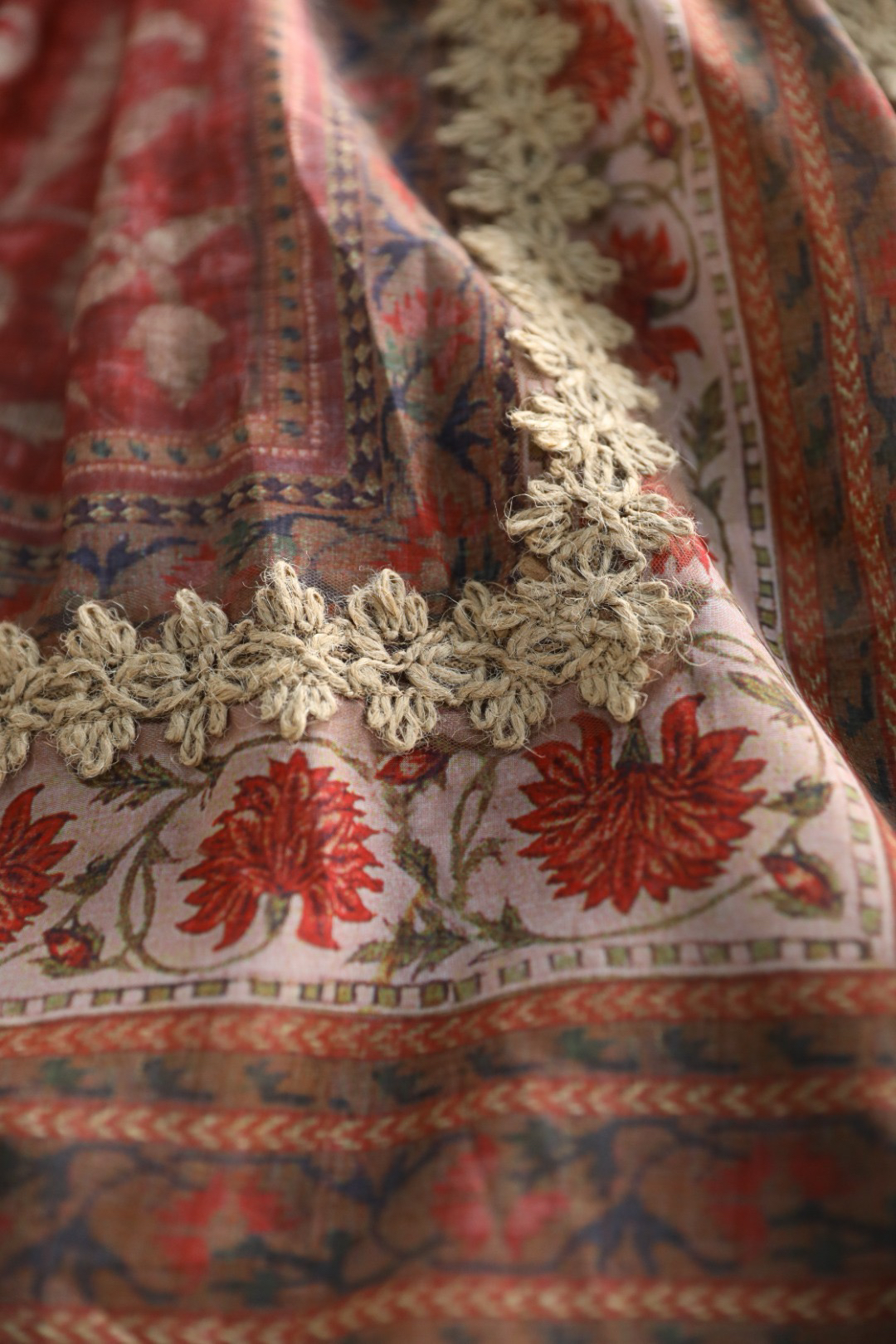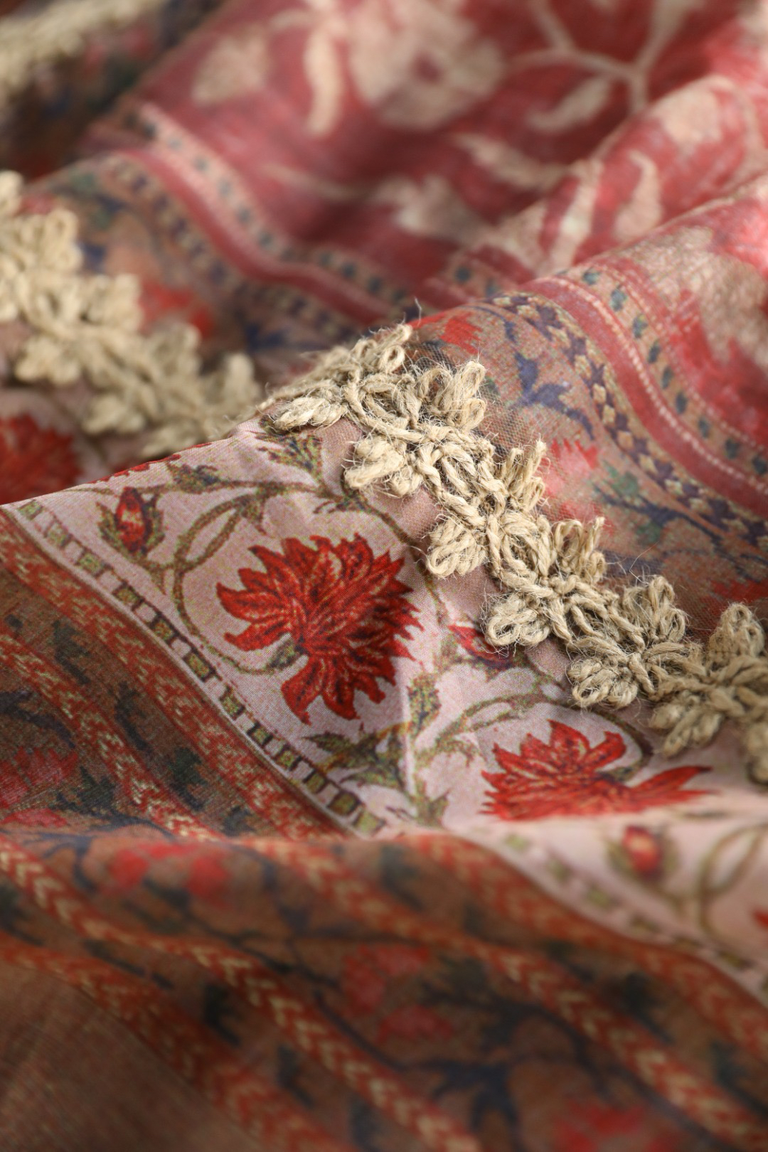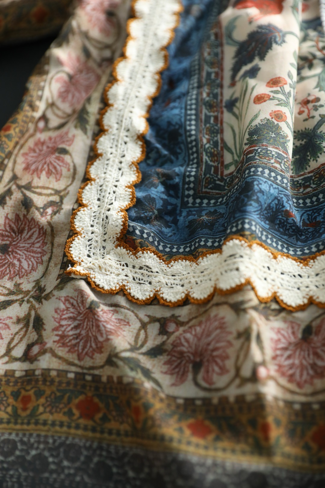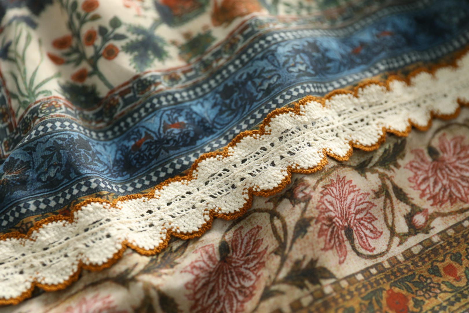高端花边对车装饰是整件衣服点眼之笔,重工打造波西米亚民族风定位印花,异域风情,花型高贵轻奢~