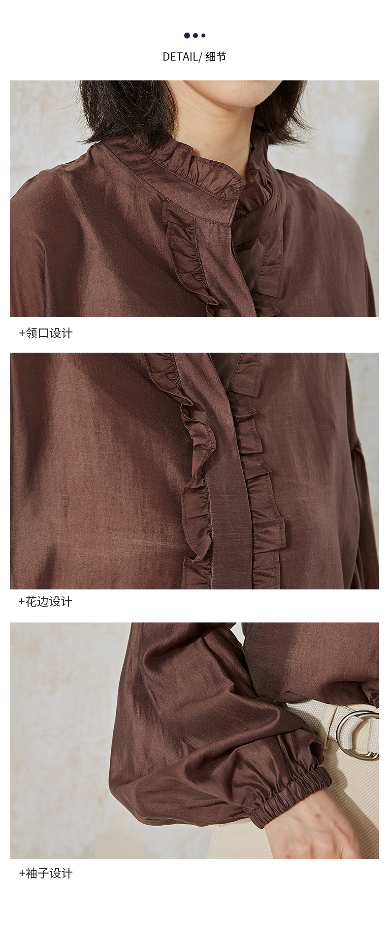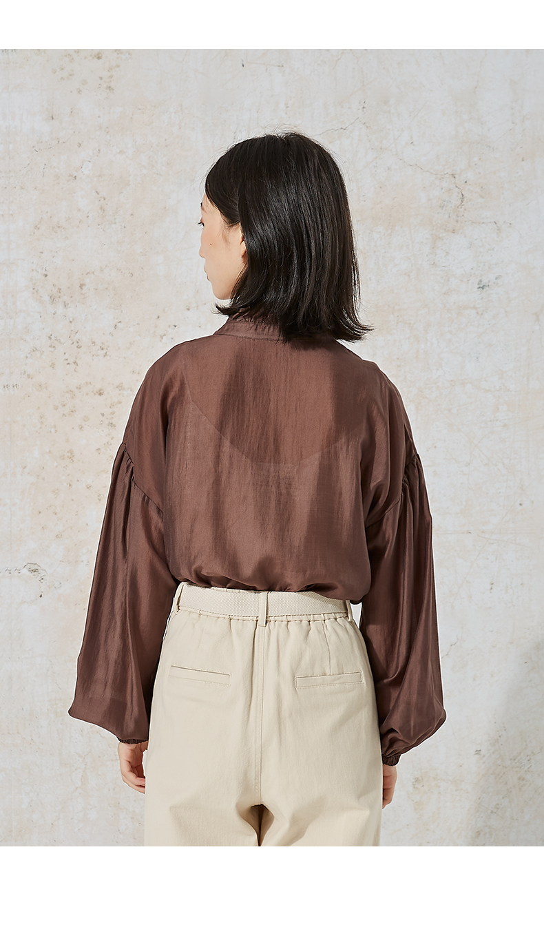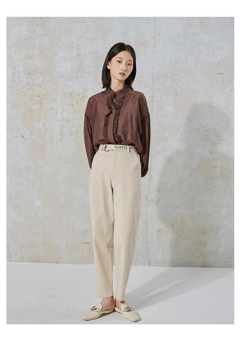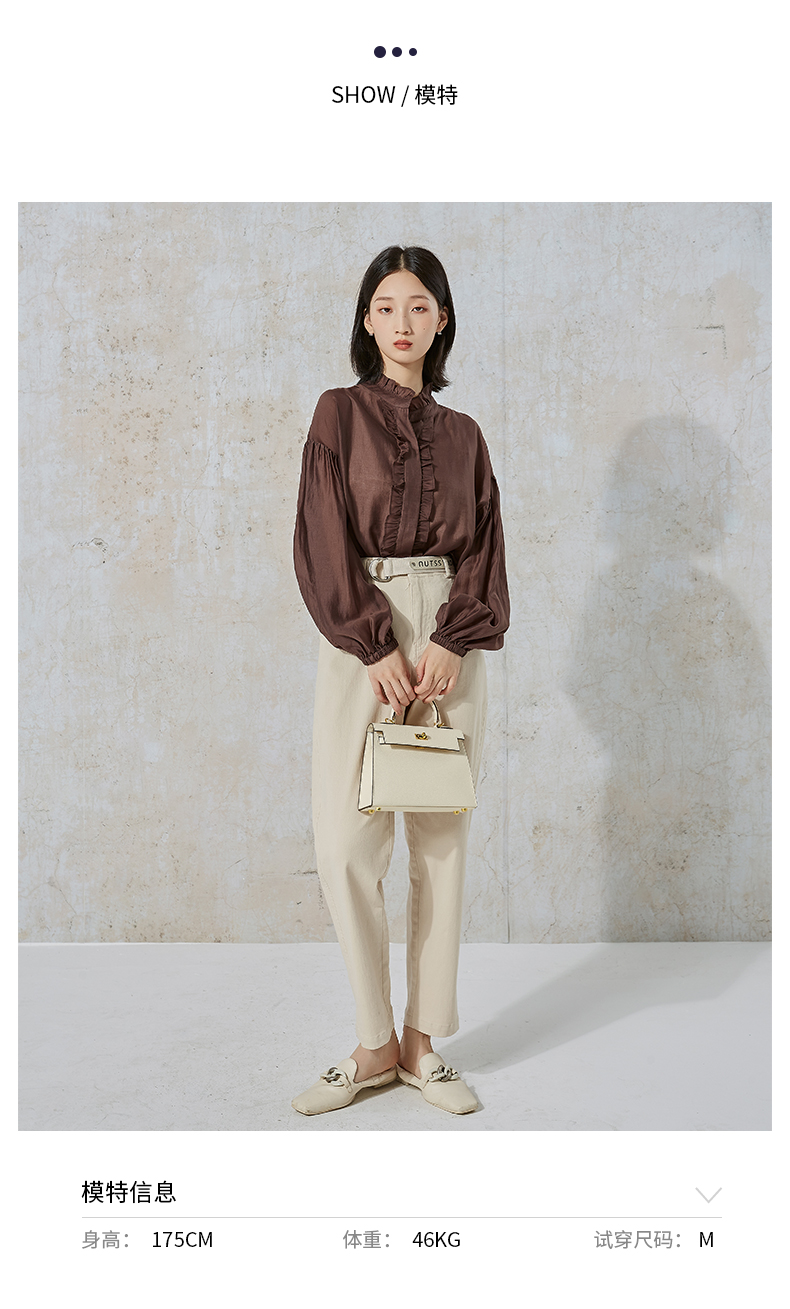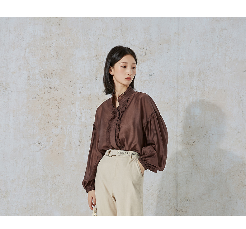 NUTS秋季新款时尚通勤风荷叶领泡泡袖设计感长袖衬衫231013089B