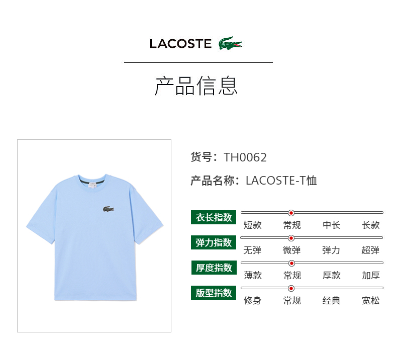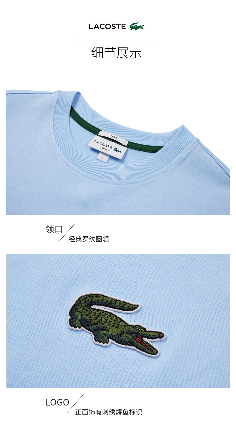 【海南专供价】Lacoste法国鳄鱼男女同款新款休闲圆领情侣短袖T恤衫TH0062-98