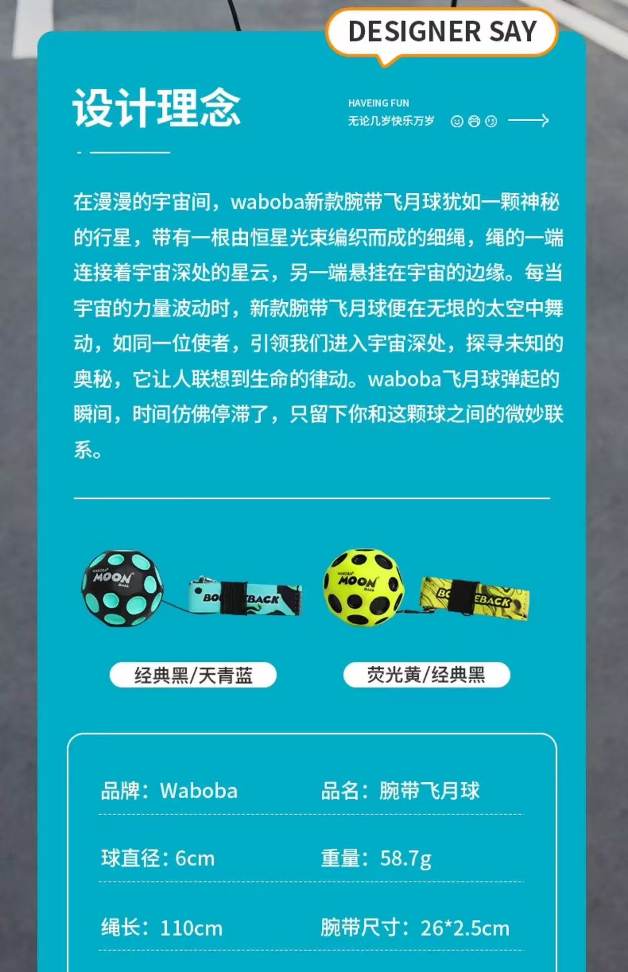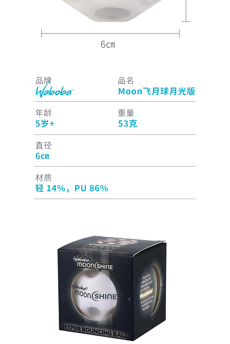*WABOBA月光弹球发光飞月球/腕带球(腕带版不发光,发光版无腕带)
