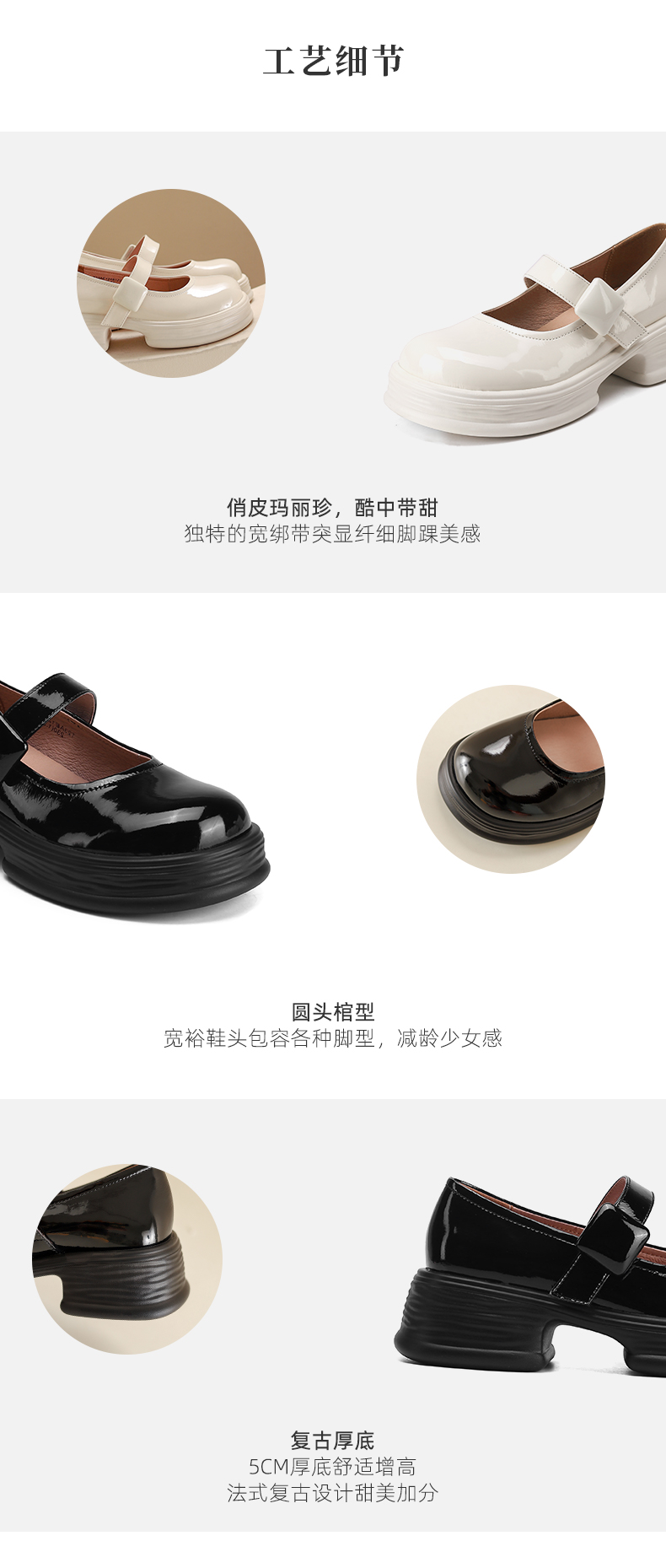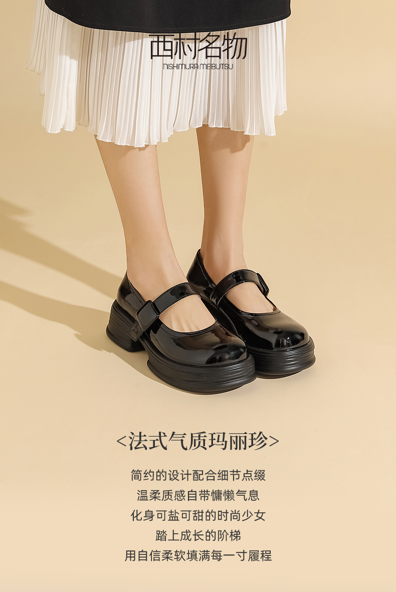 西村名物2023春季新款时尚法式气质圆头厚底玛丽珍鞋女单鞋12481