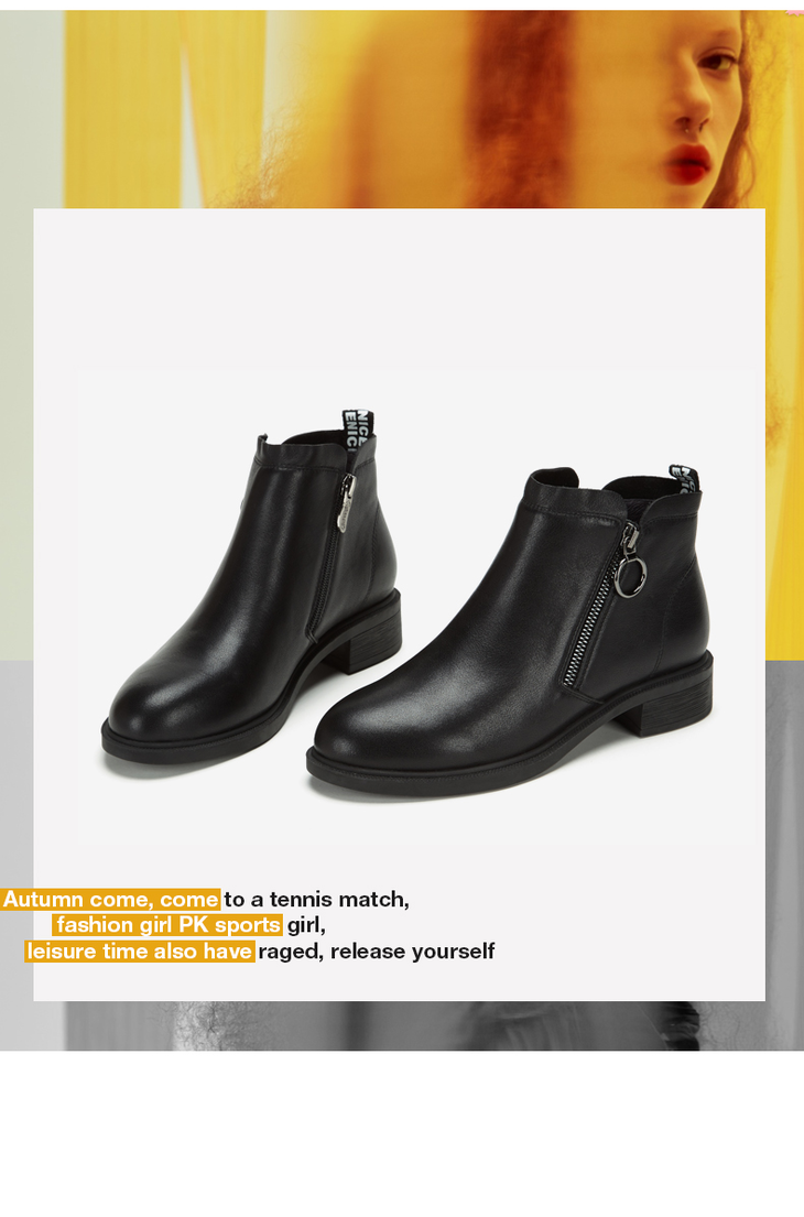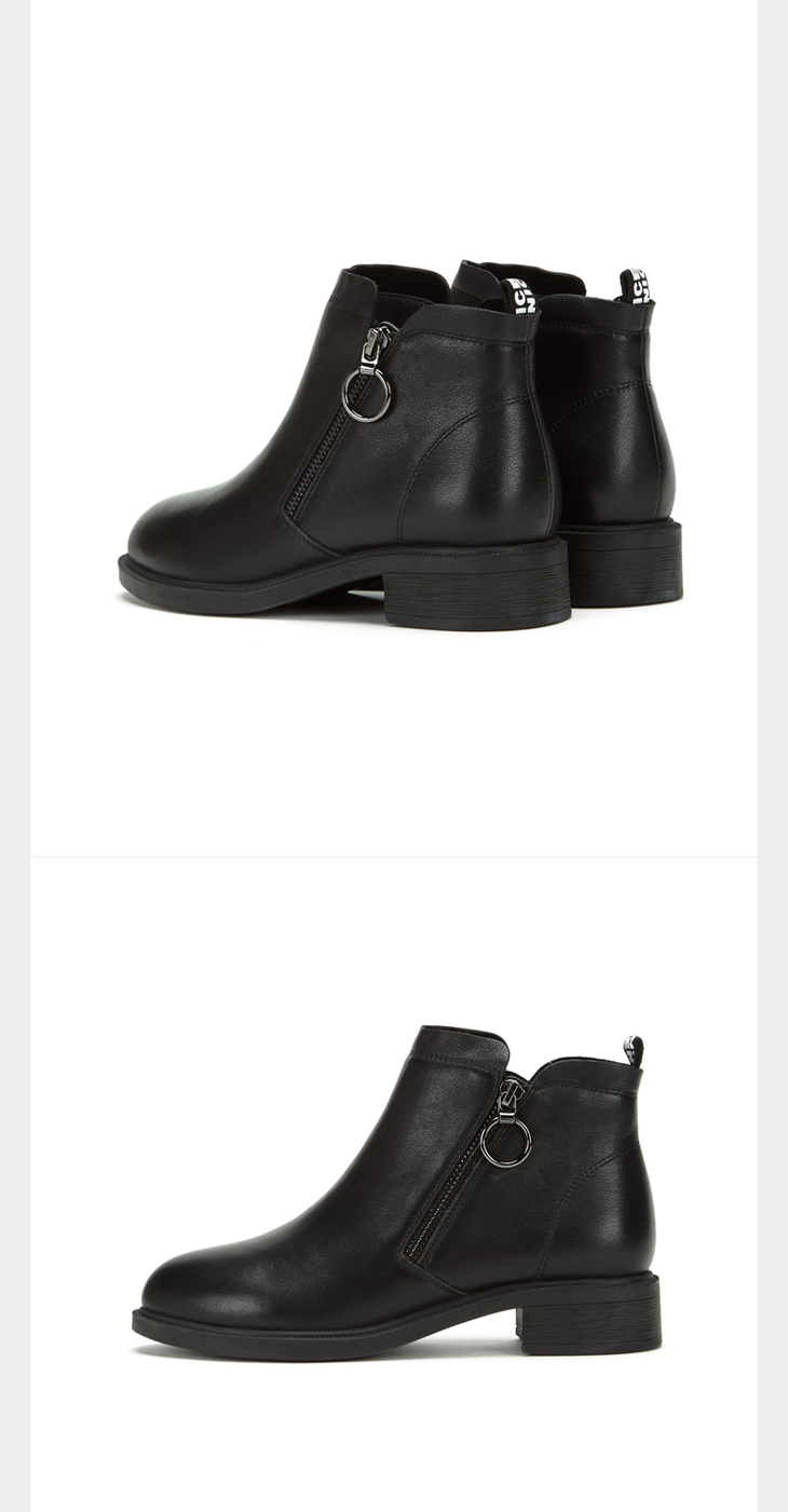 西村名物2021冬季新款女真皮鞋英伦风短靴低跟单靴中筒靴子T21DS45111