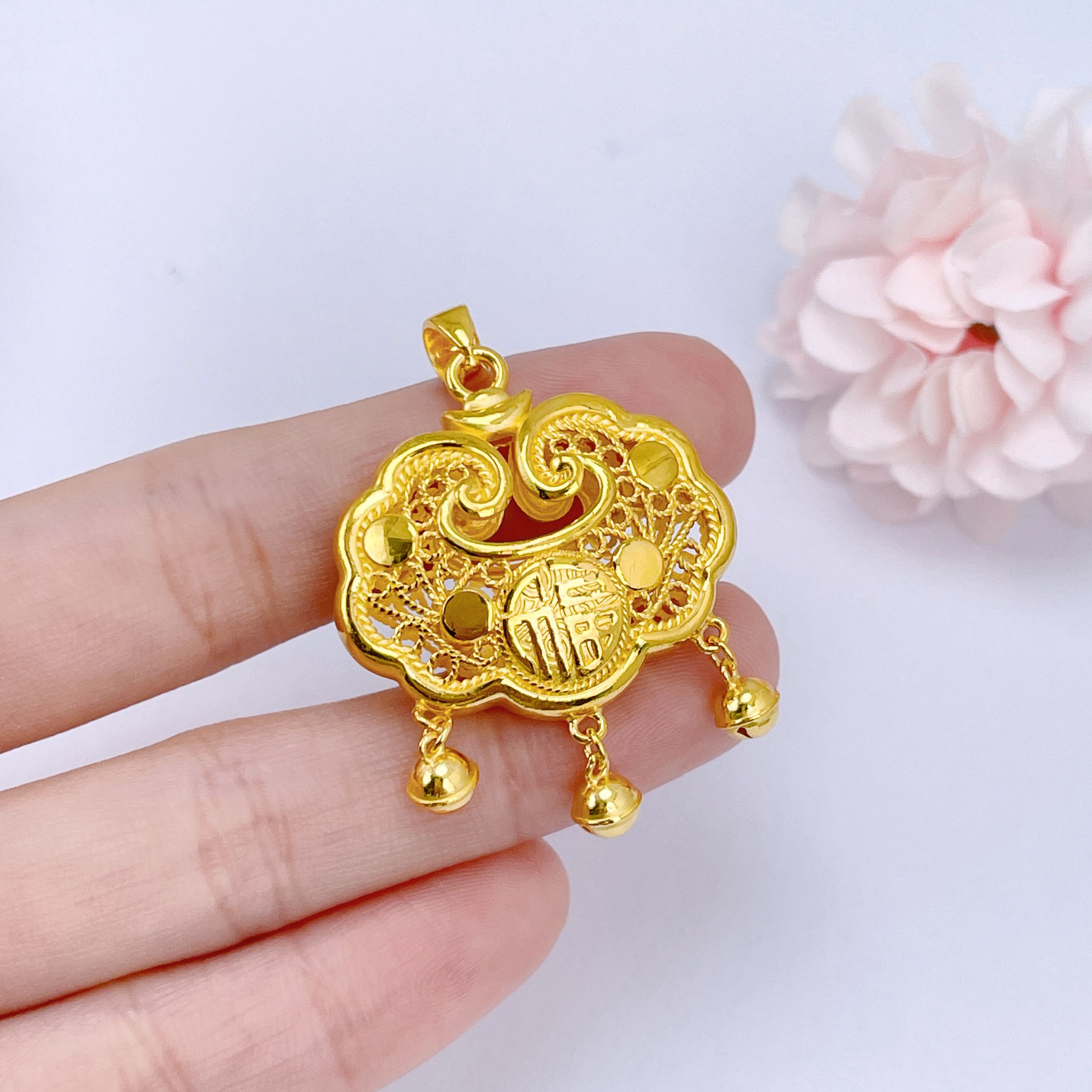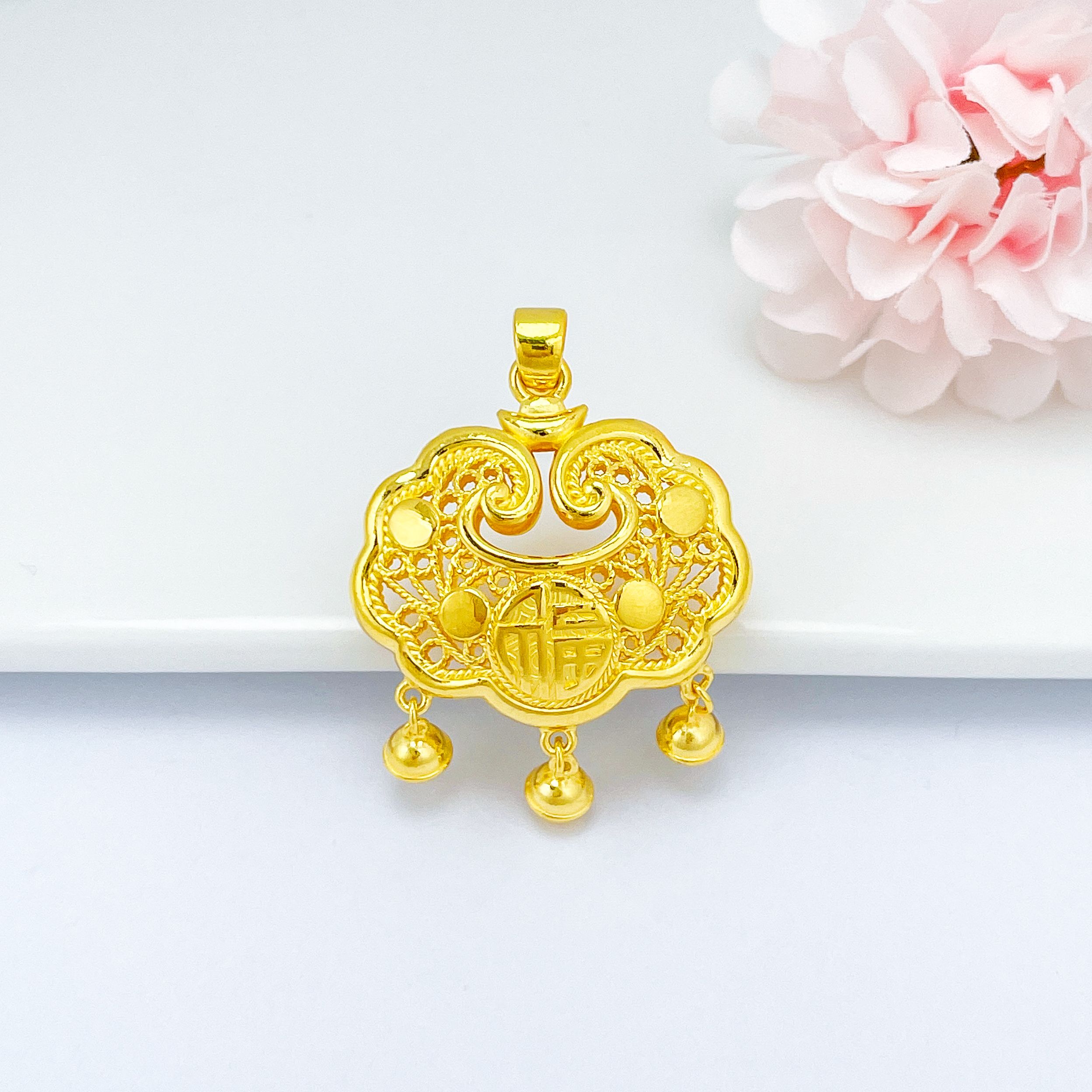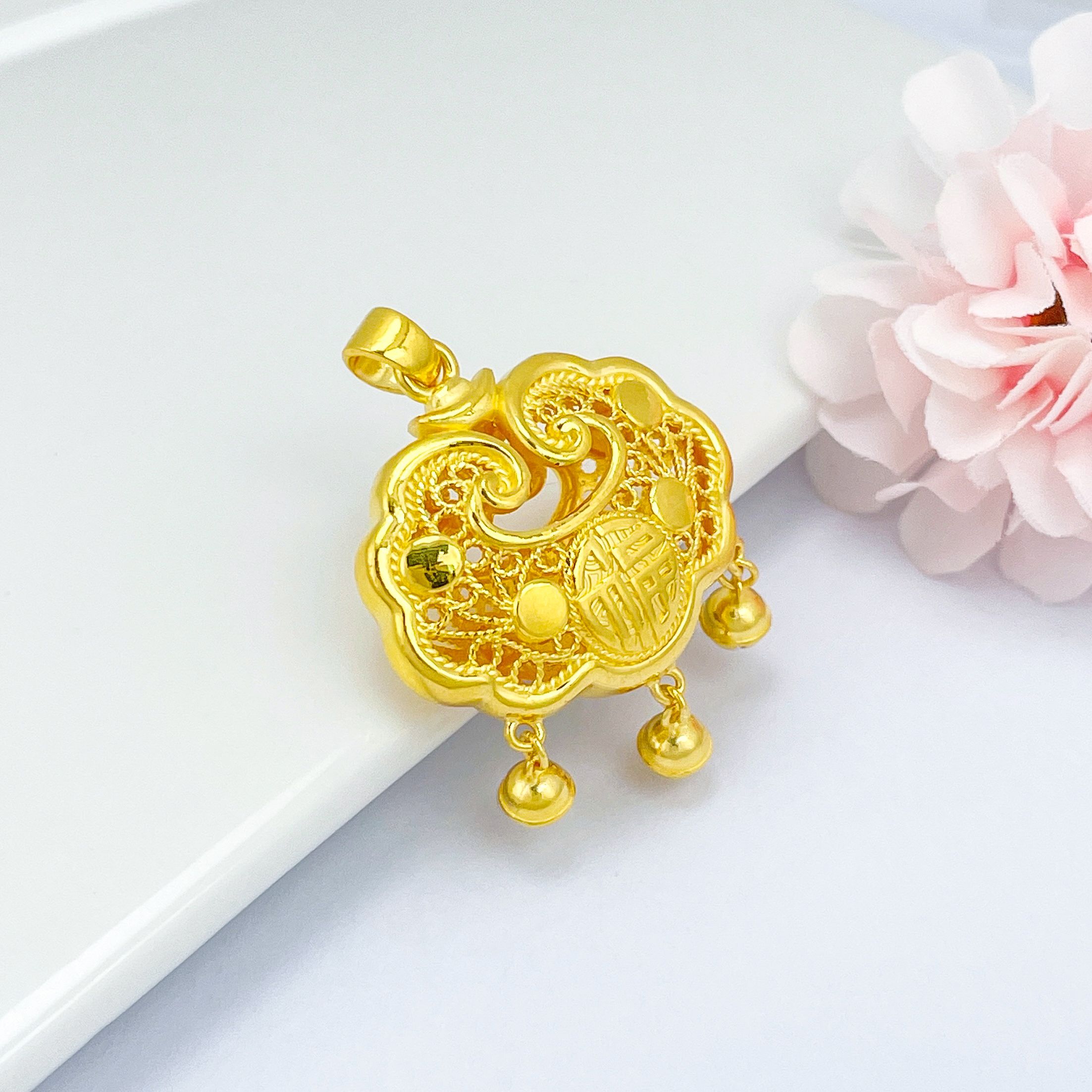 【限时克减150元】足金999.9 双面镂空铃铛如意福字锁包吊坠(不含链)(DZ00590-04)(预售产品下单后不退款不退货不换货不补差价)