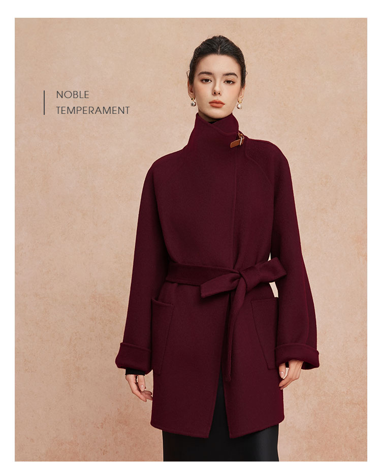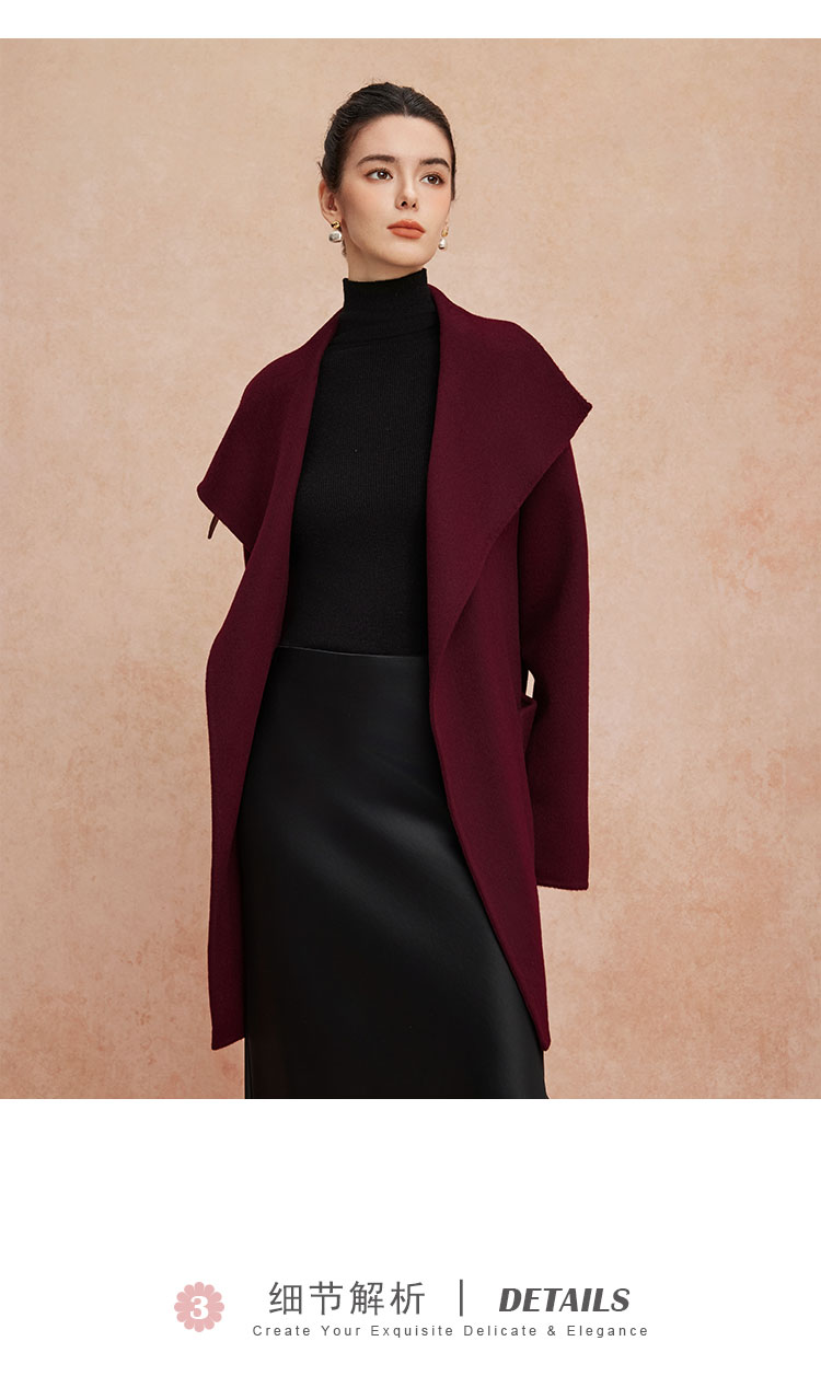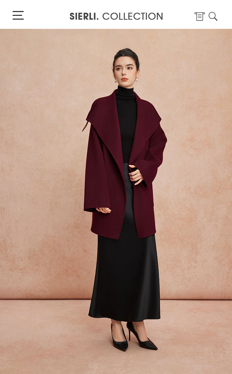 QH913斯尔丽25新款软糯经典翻领欧范OL气质中长款大衣