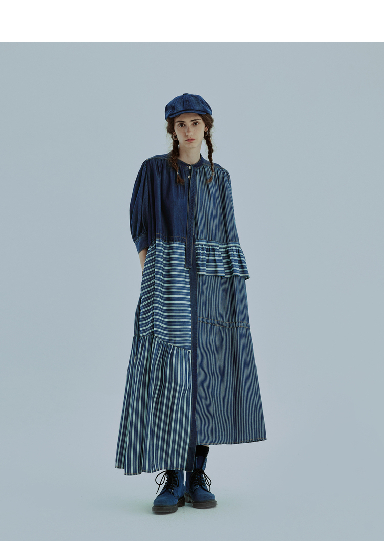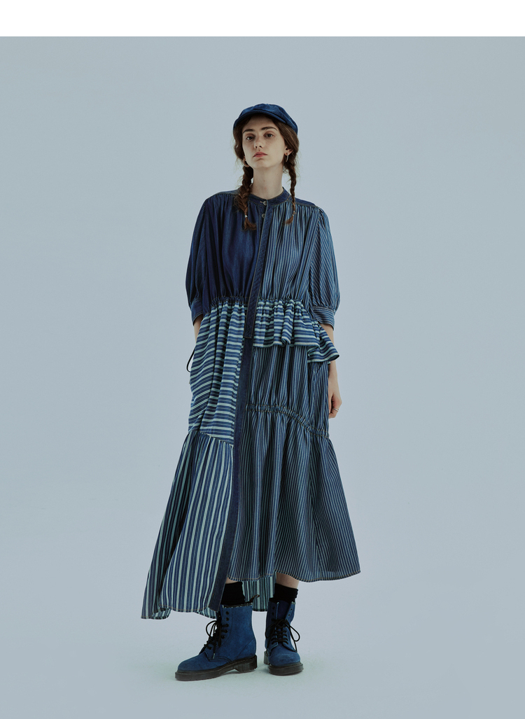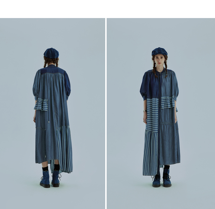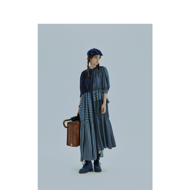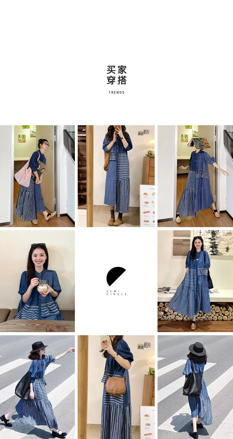 半圆/D23214227/条纹设计感超好看长款连衣裙