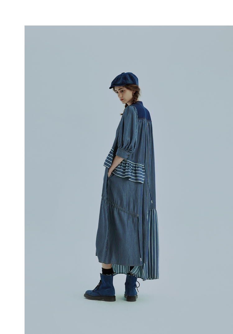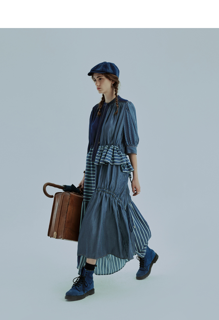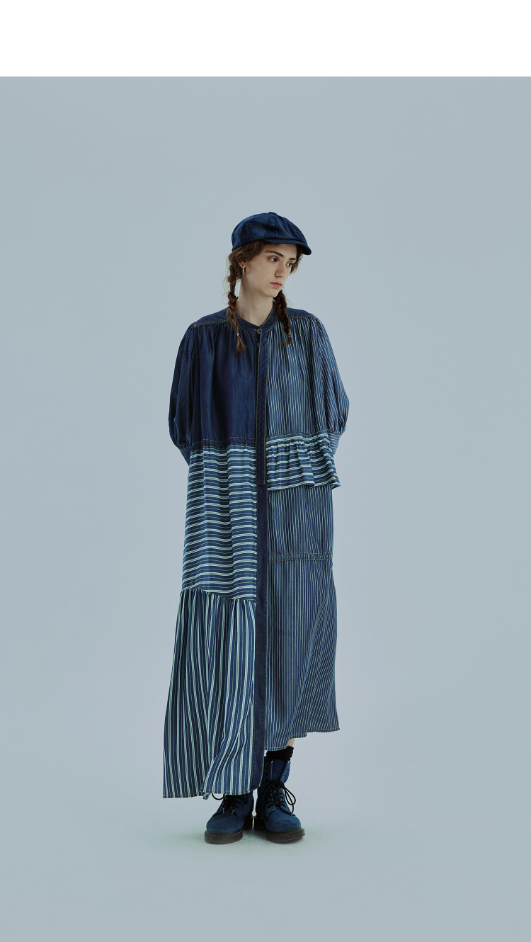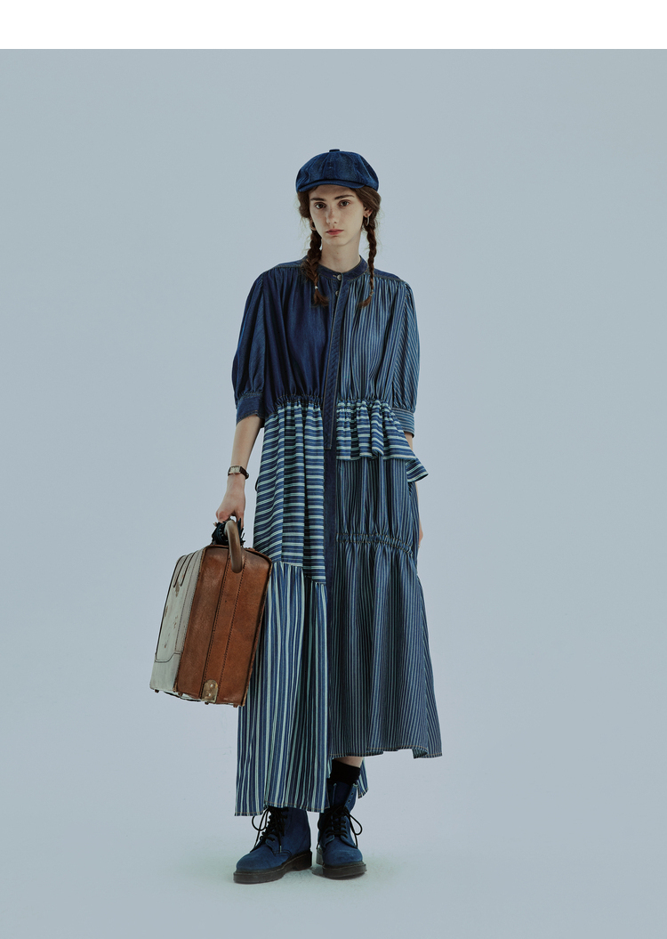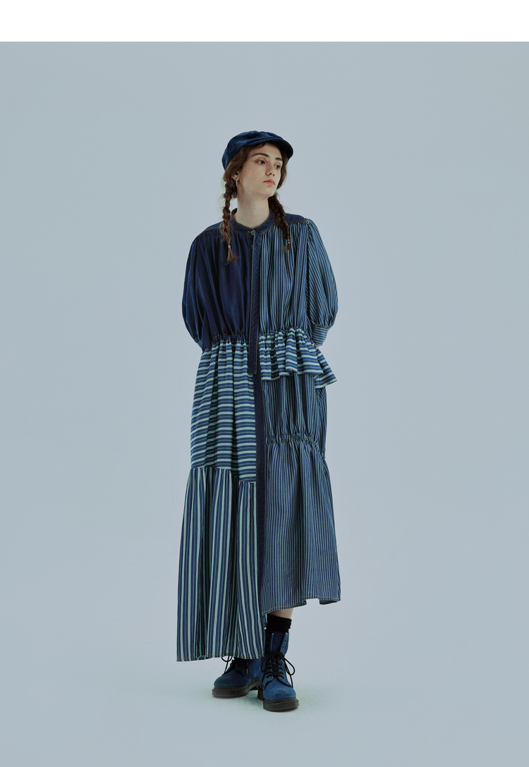 半圆/D23214227/条纹设计感超好看长款连衣裙