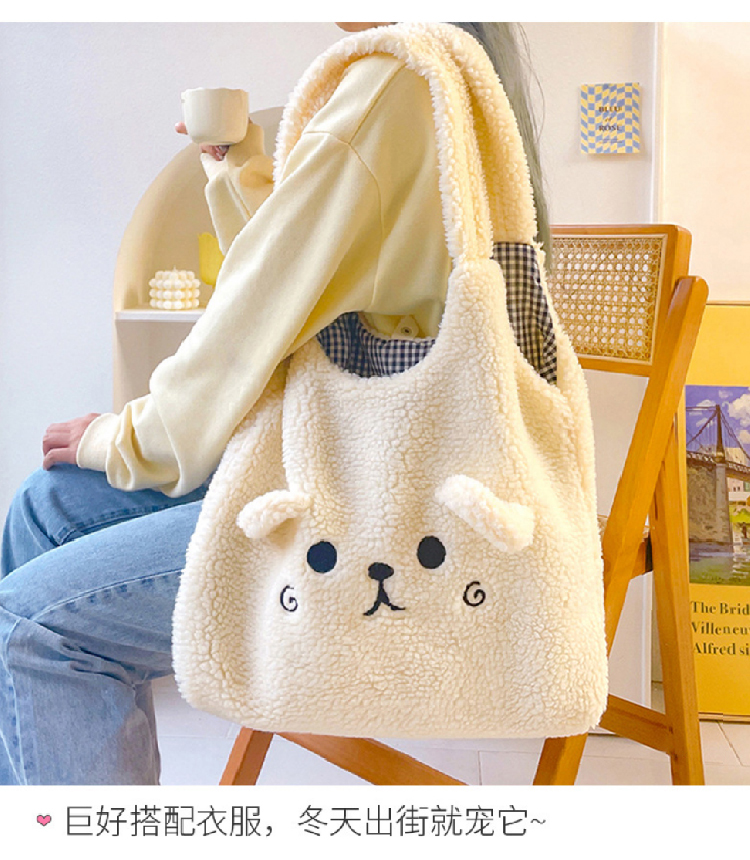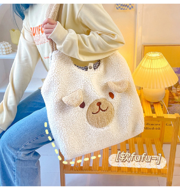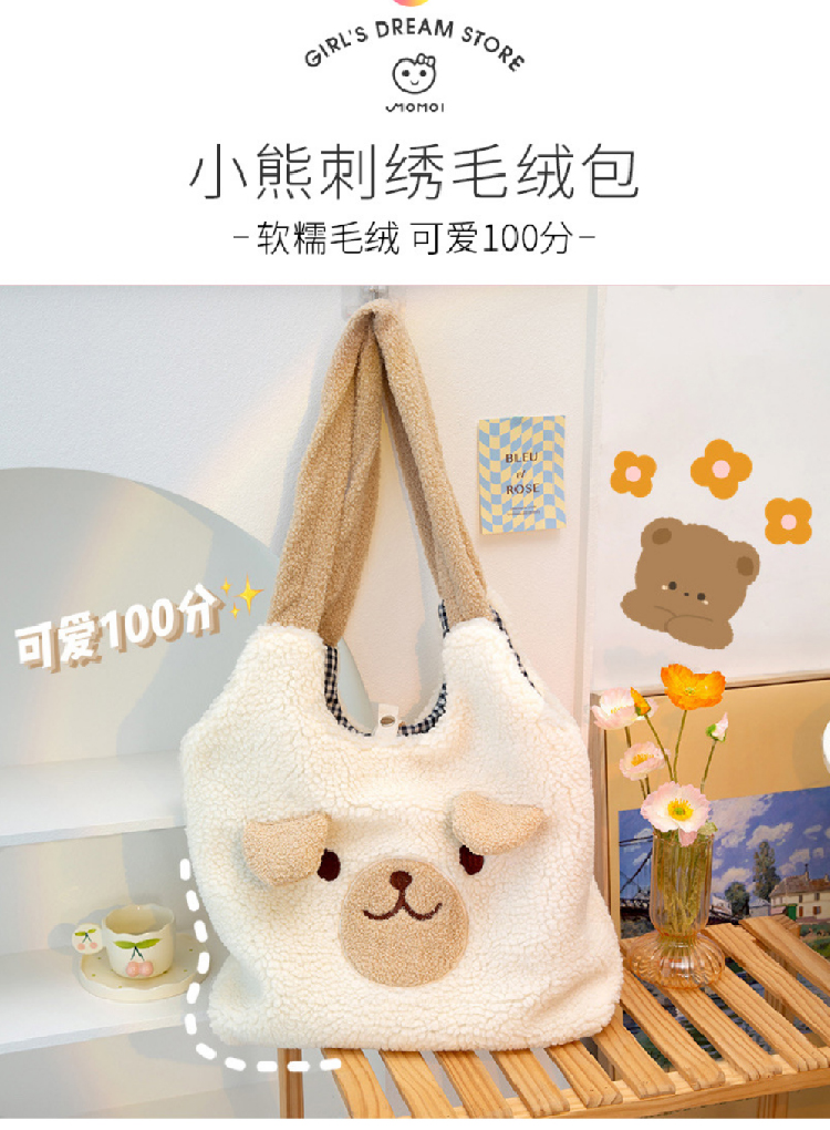 【羊羔绒单肩包】秋冬大容量可爱羊羔毛绒上班包包 手提小熊毛茸茸包学生帆布袋