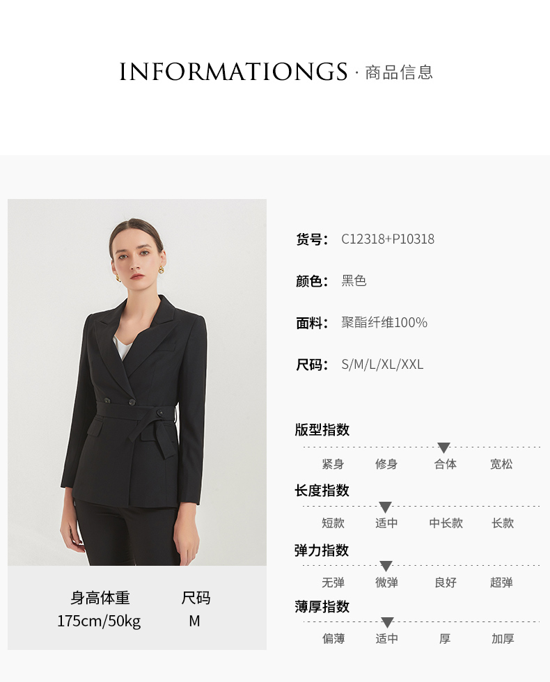 IWY/黑色新款高端御姐风黑色西装外套高冷套装西服女上衣两件套C12318+P12318