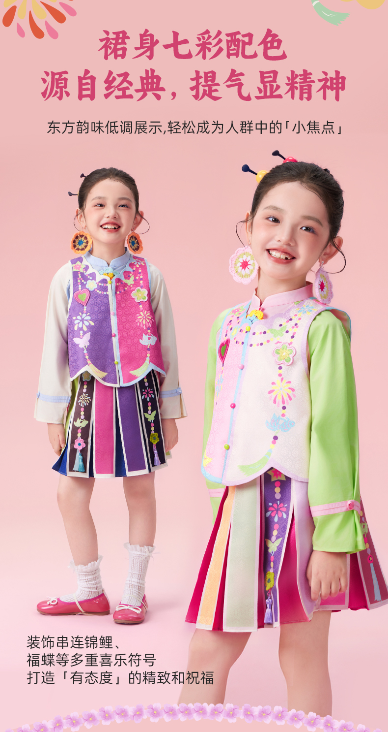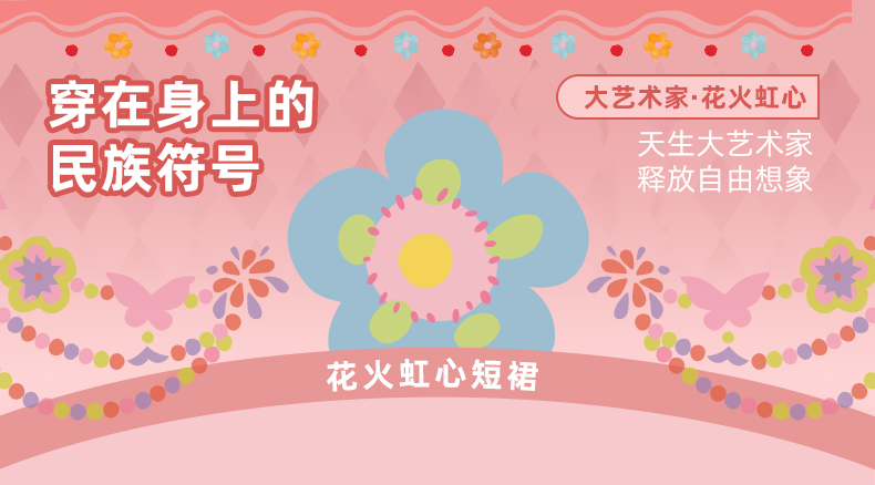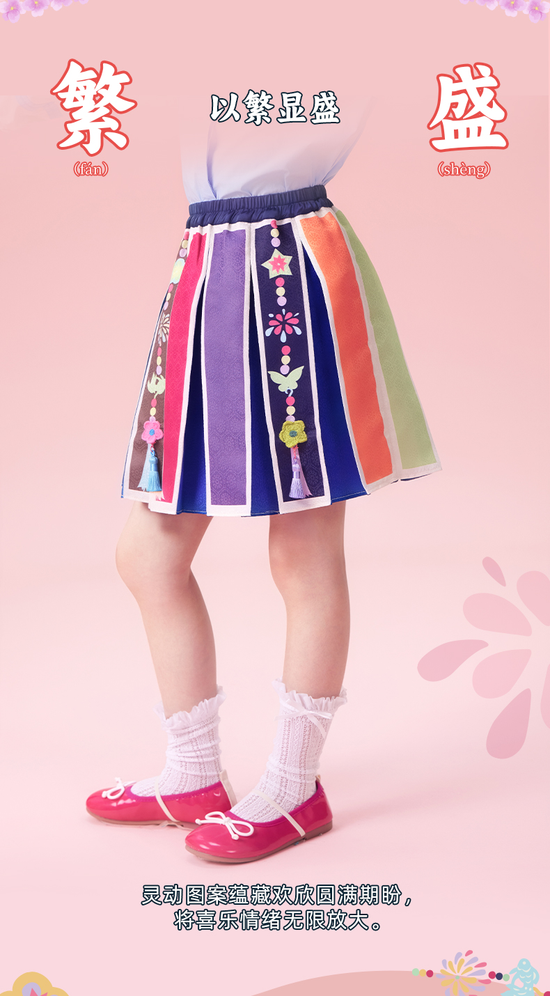 年衣童装25秋季新款新中式国风原创A字裙短裙花火虹心短裙