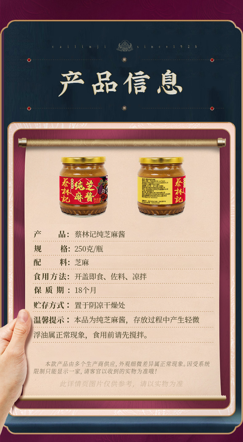 【老字号】 蔡林记 白芝麻酱250g/黑芝麻酱 200g