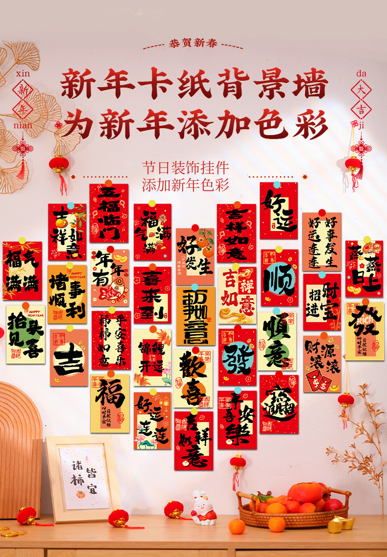 【元旦新年蛇年装饰】明信片幼儿园班级背景墙 玄关店铺拍照道具
