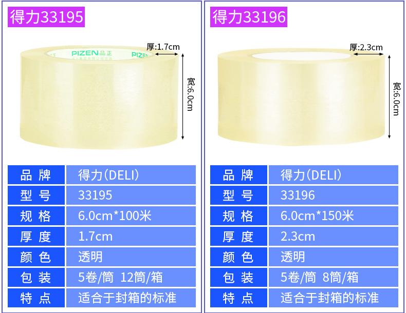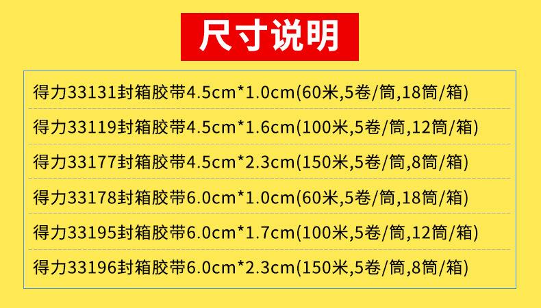 得力透明宽胶带快递打包胶带6cm大卷封箱胶带封箱带大量整箱批发