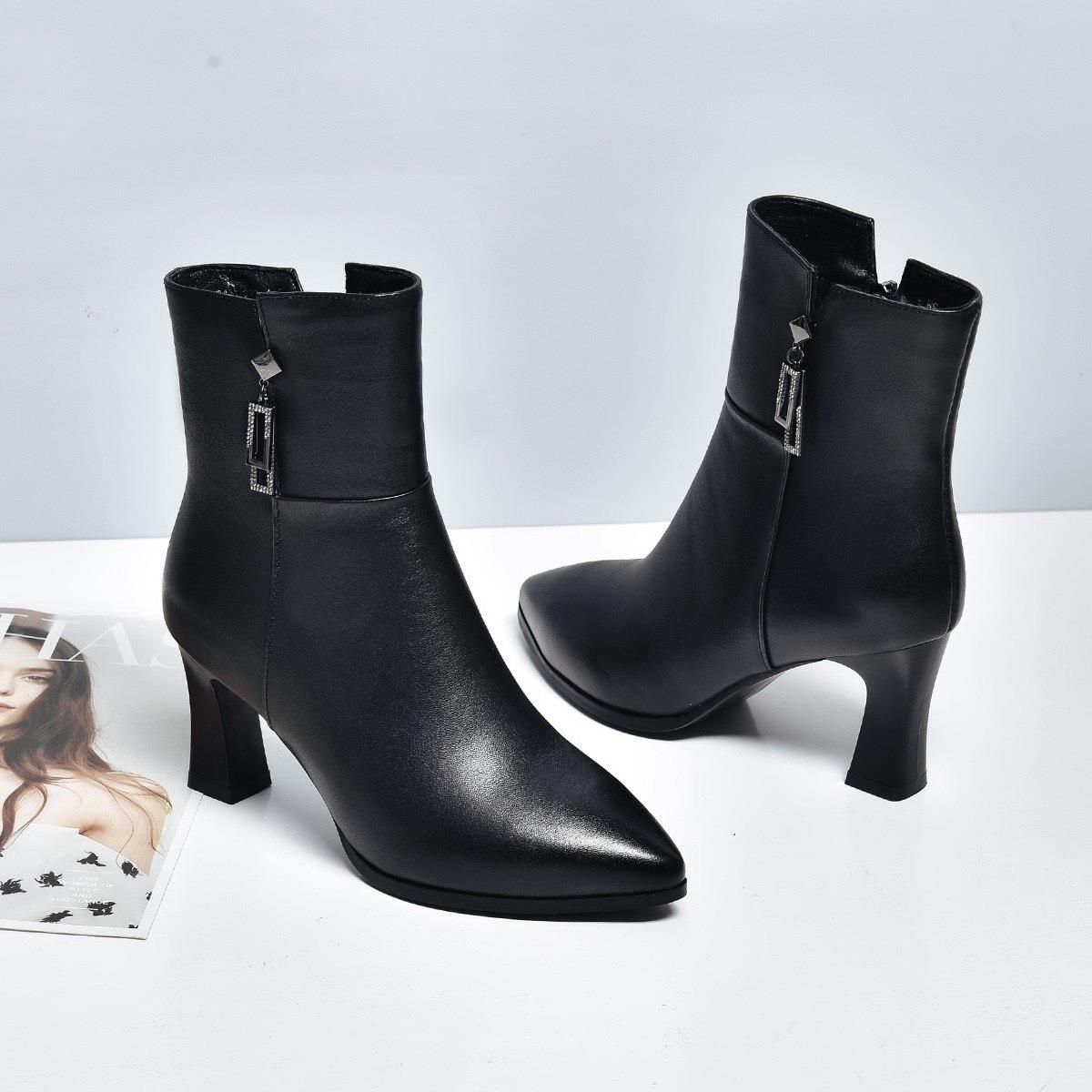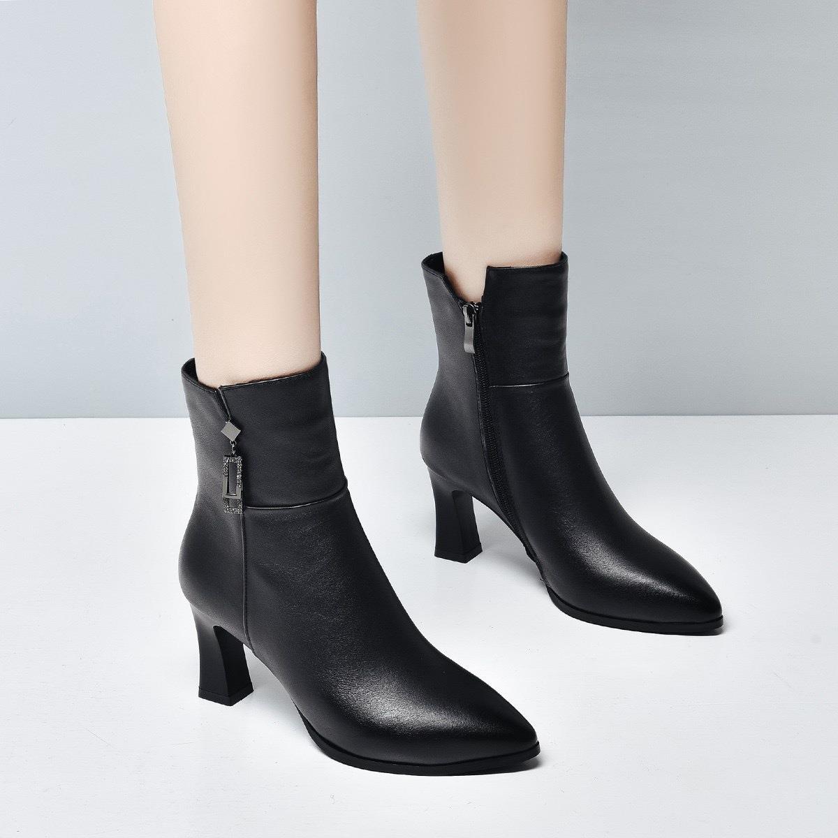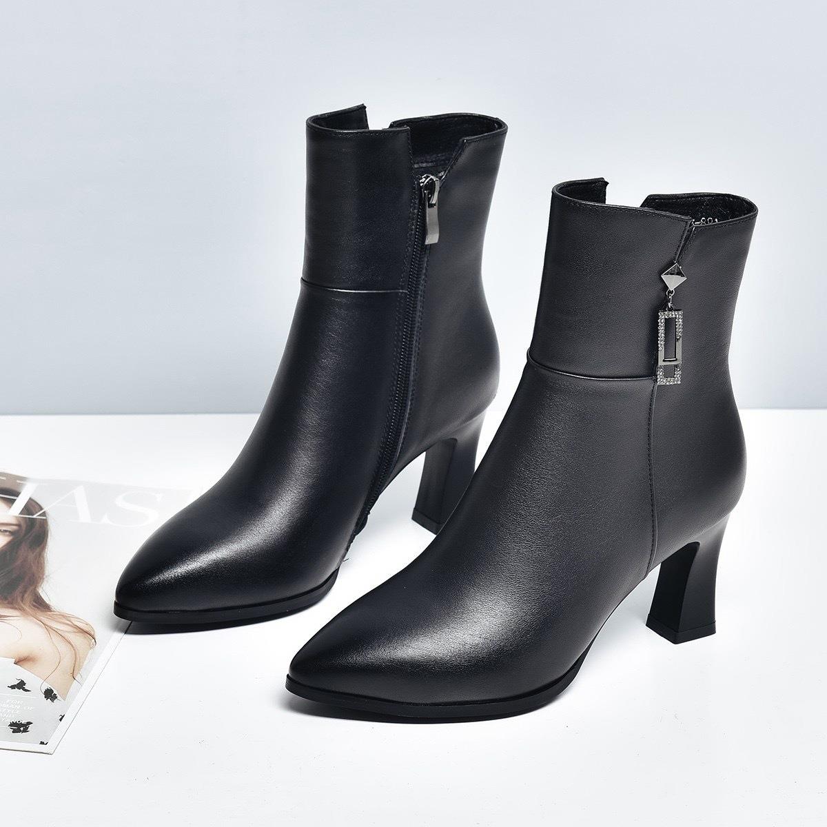秋冬款加绒马丁靴女2025新款真皮系带粗跟靴子中跟中筒棉鞋女短靴