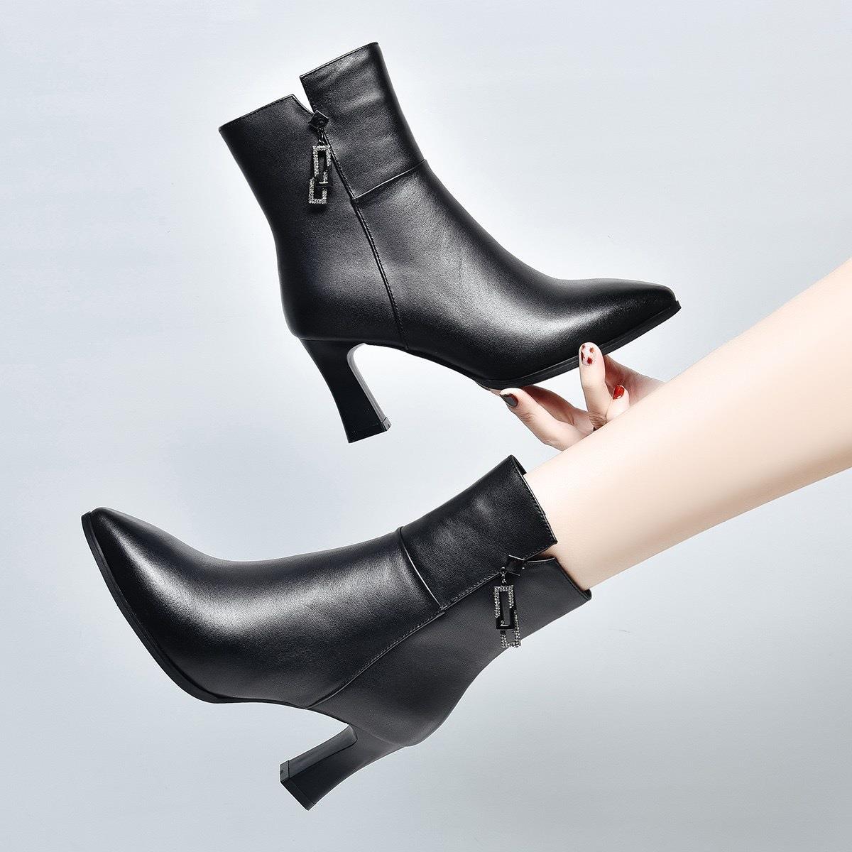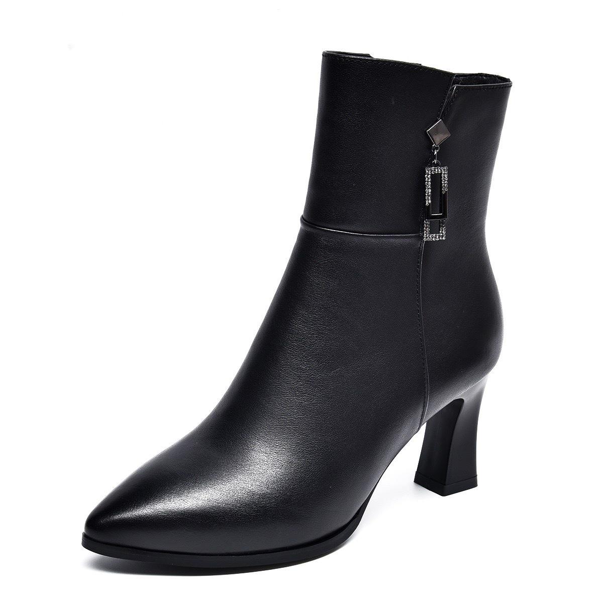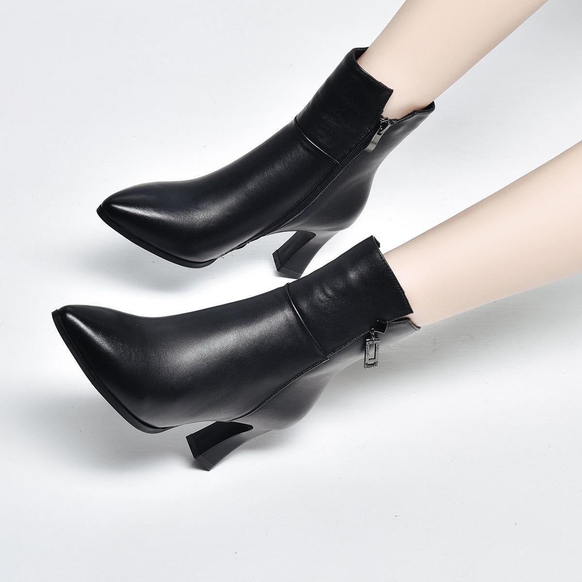 秋冬款加绒马丁靴女2025新款真皮系带粗跟靴子中跟中筒棉鞋女短靴