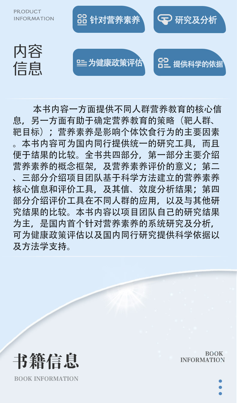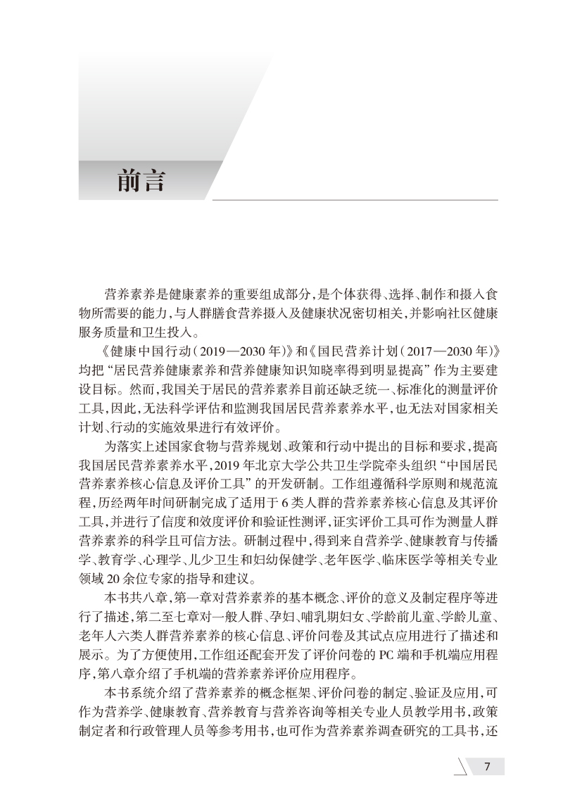中国居民营养素养核心信息及评价 马冠生 朱文丽 营养素养系统研究及分析 不同人群营养素养评估工具 人民卫生出版社9787117347679