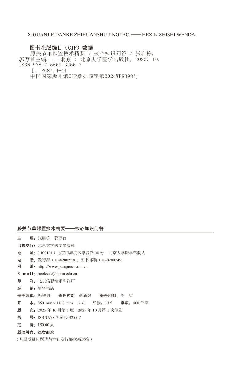 膝关节单髁置换术精要——核心知识问答 张启栋 郭万首 主编 系统介绍单髁关节置换技术的核心技术的核心知识 北京大学医学出版社