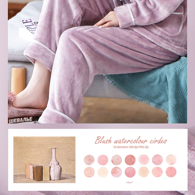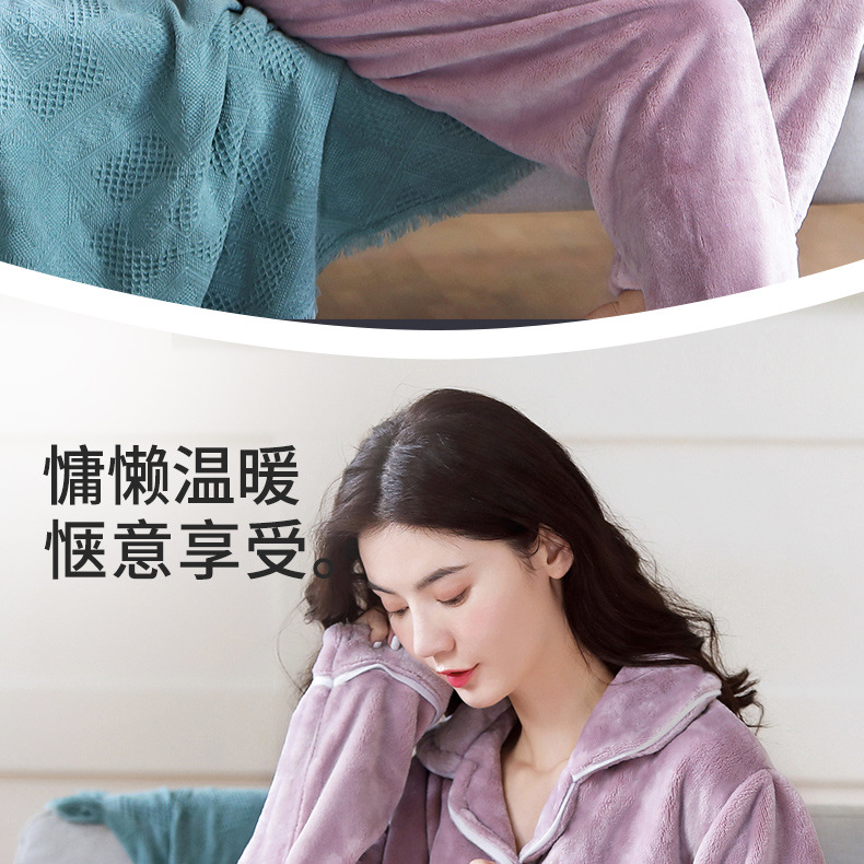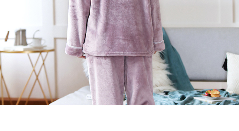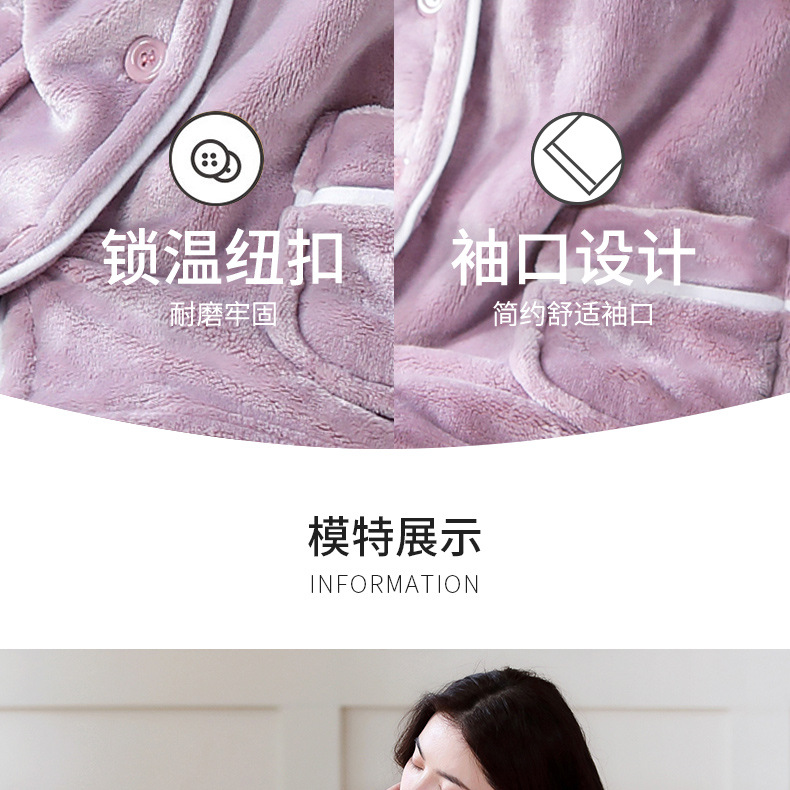【加绒保暖!柔软舒适】新款秋冬季珊瑚绒睡衣女翻领开衫法兰绒女士家居服套装。rc 商品图11
