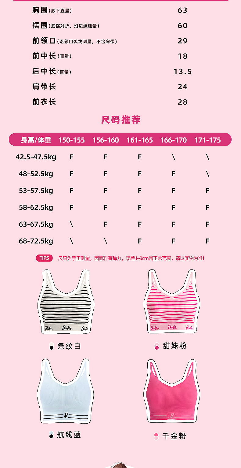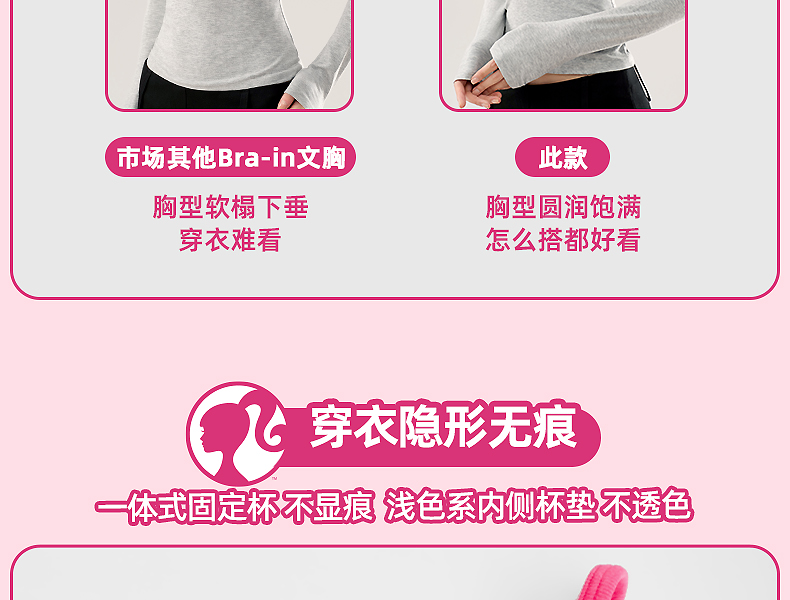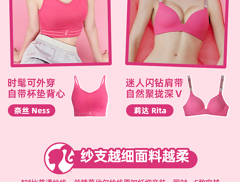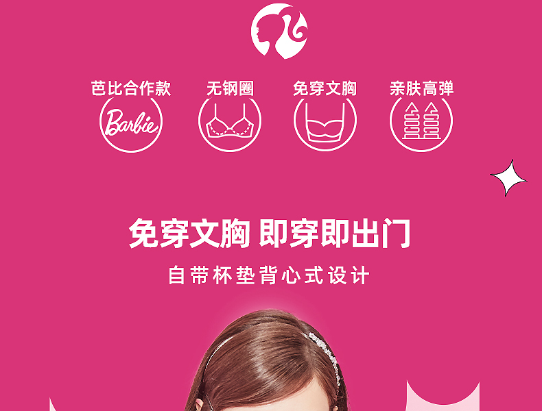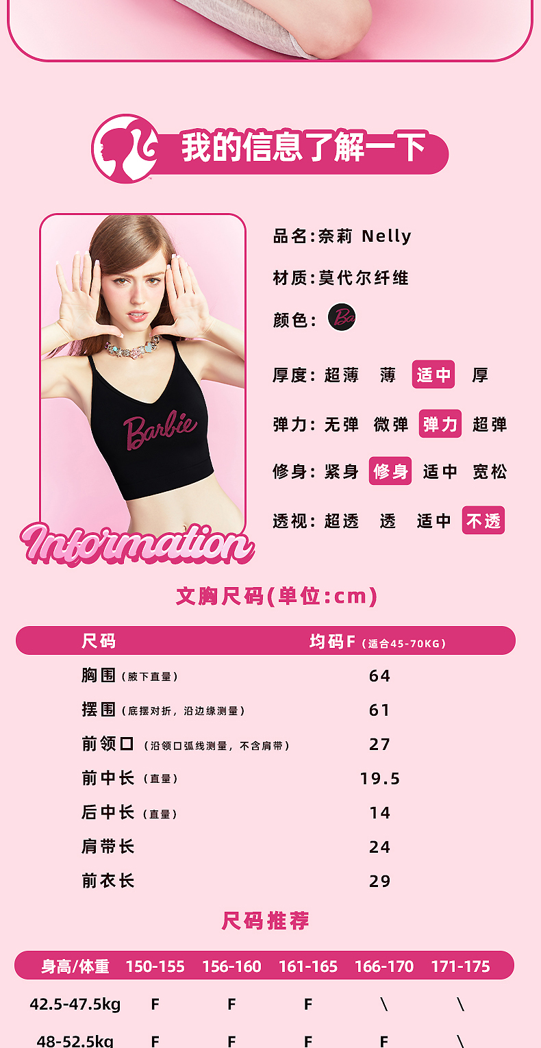 好奇蜜斯Barbie芭比联名可外穿内搭无钢圈无痕内衣女莫代尔文胸罩 奈莉 奈丝