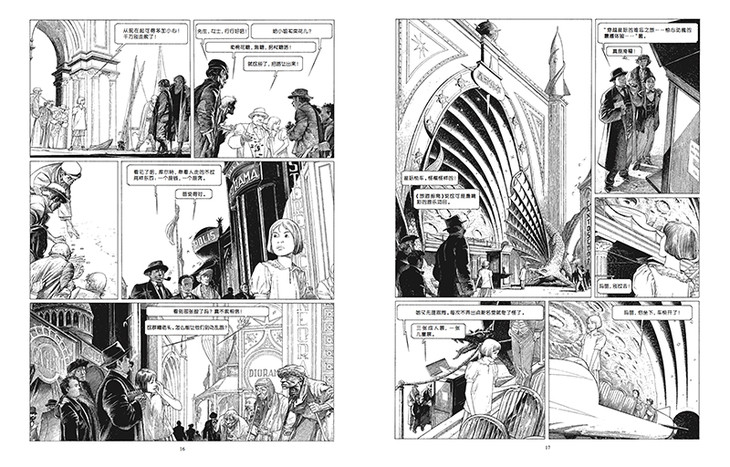 在《朦胧城市》系列中,几乎每一页画面中都有大量让人叹为观止的建筑物和城市,那些游走于现实与虚幻之间的超现实主义建筑最终成为了该系列的招牌特色。