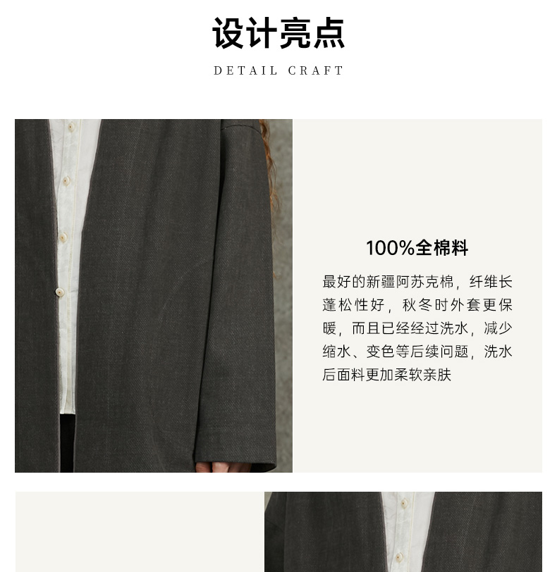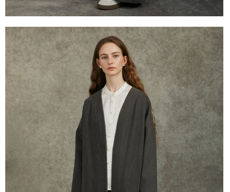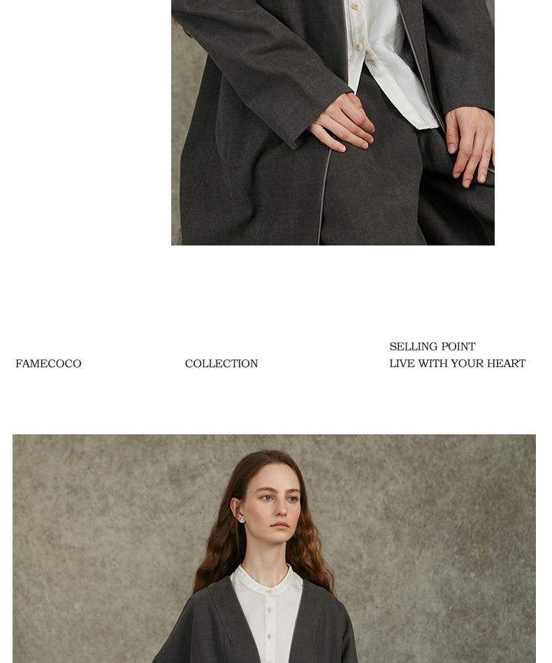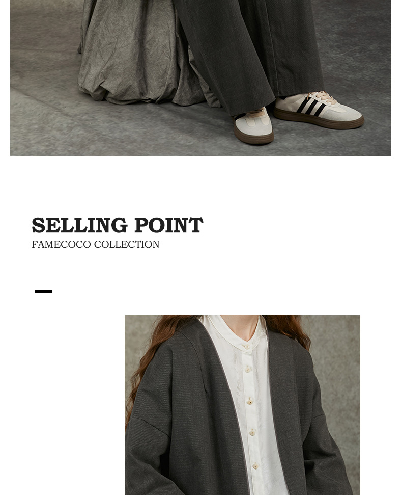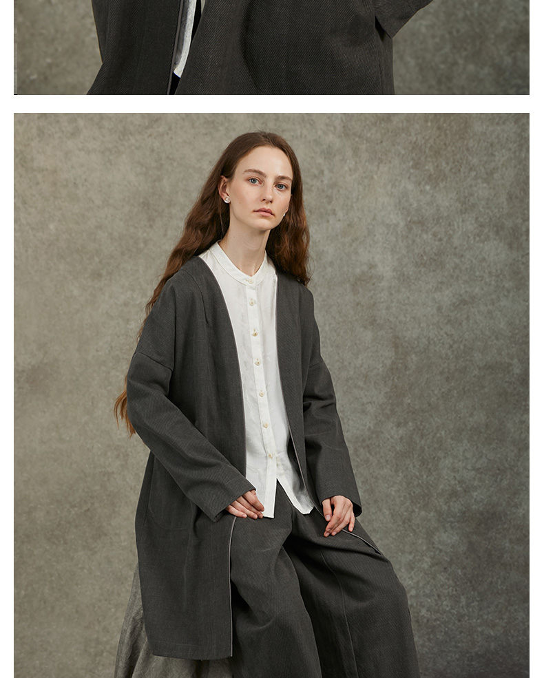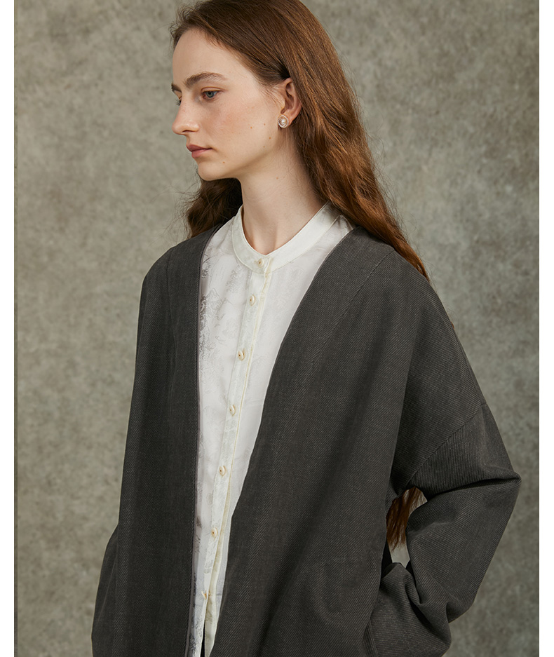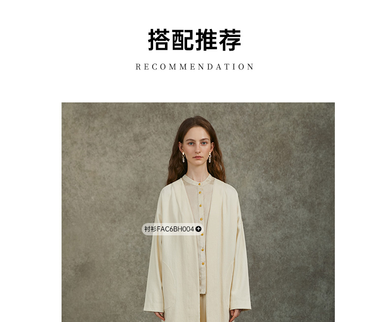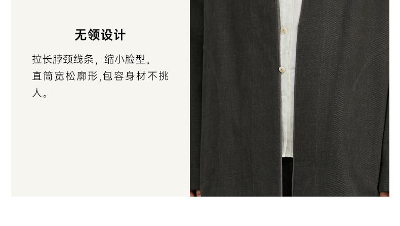 Famecoco范可儿原创文艺设计感无领设计文艺直筒宽松外套春款FAC6AB001