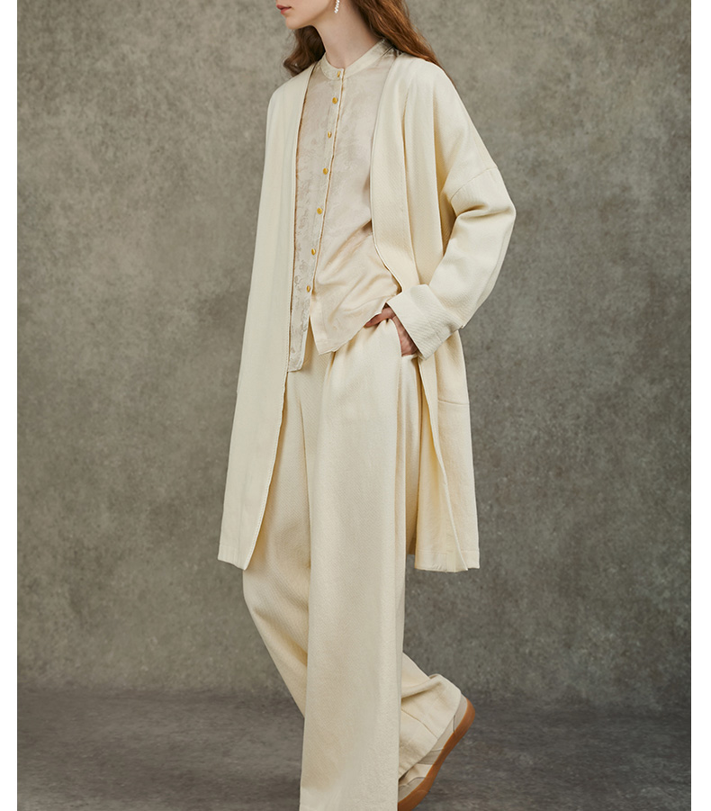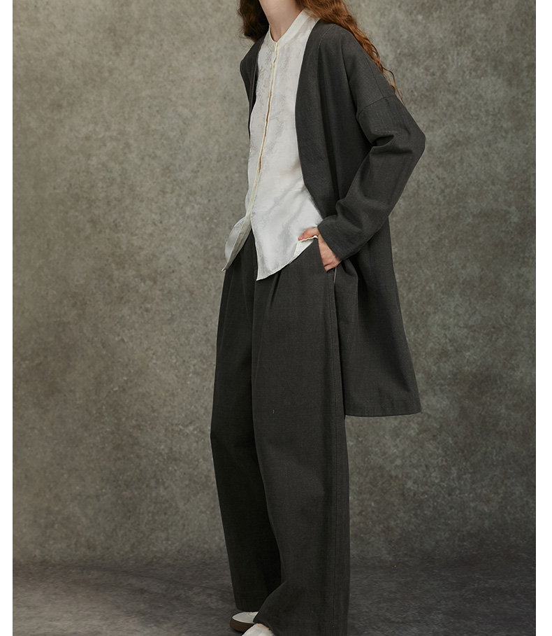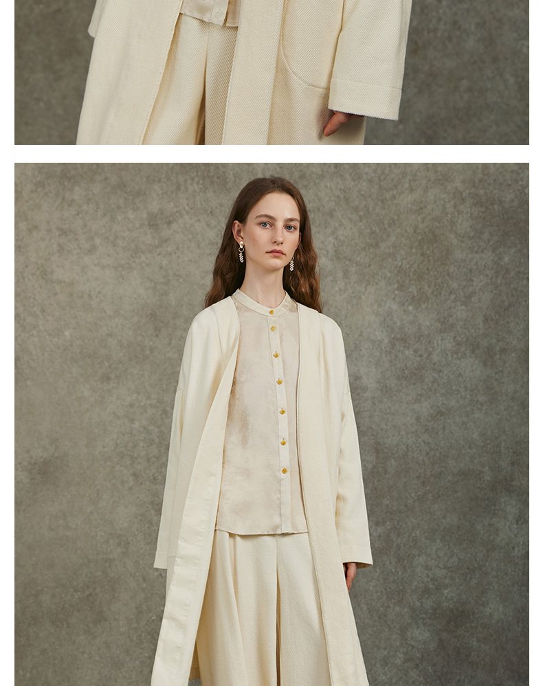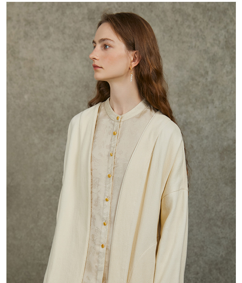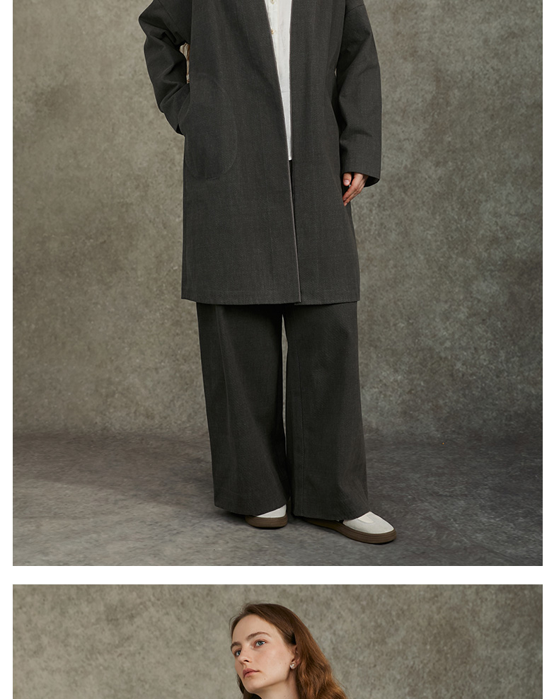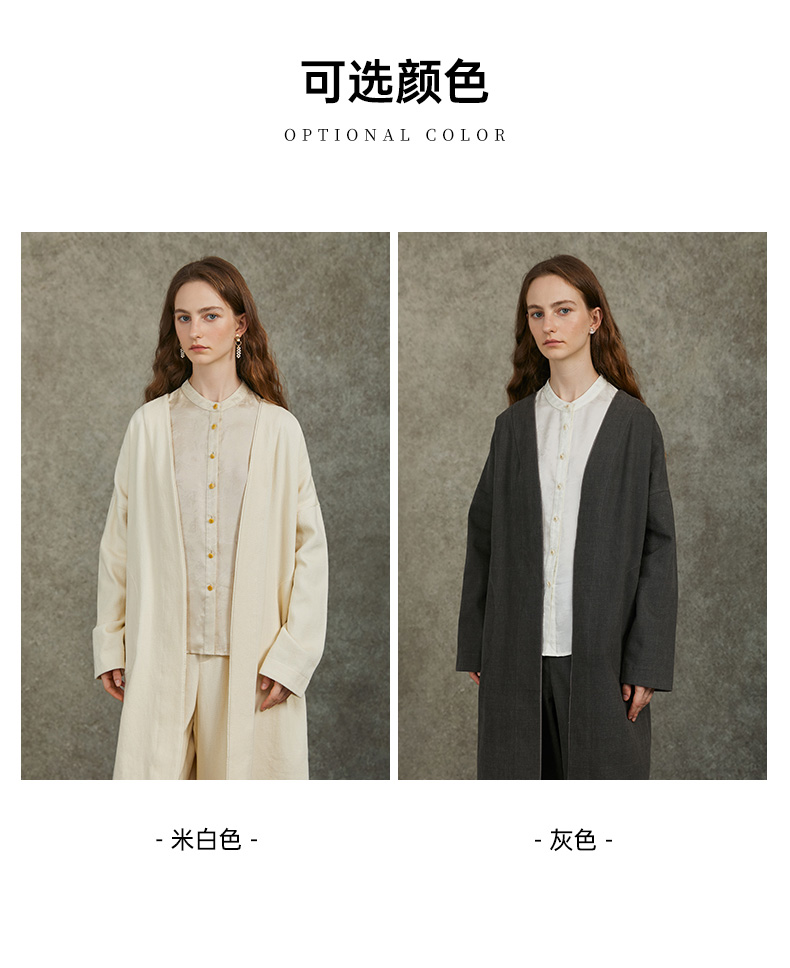Famecoco范可儿原创文艺设计感无领设计文艺直筒宽松外套春款FAC6AB001