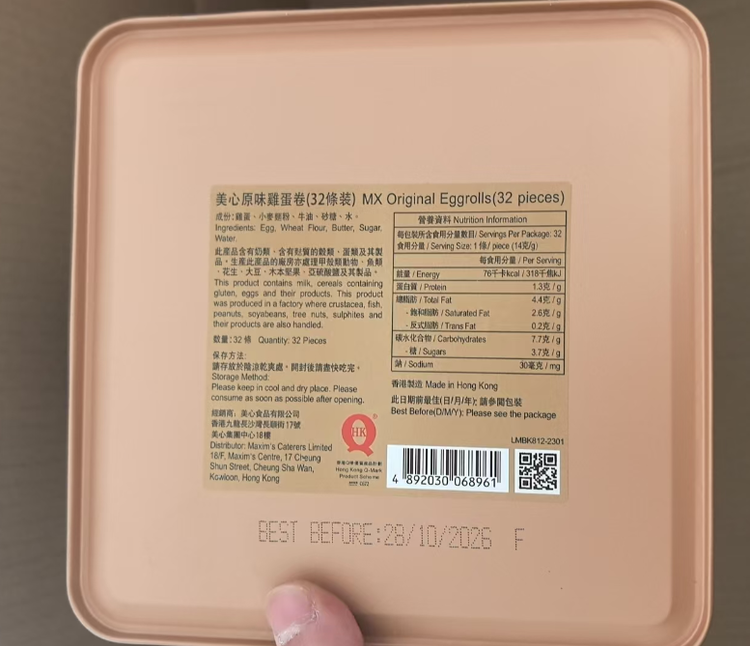 【产品名称】香港美心蛋卷448克