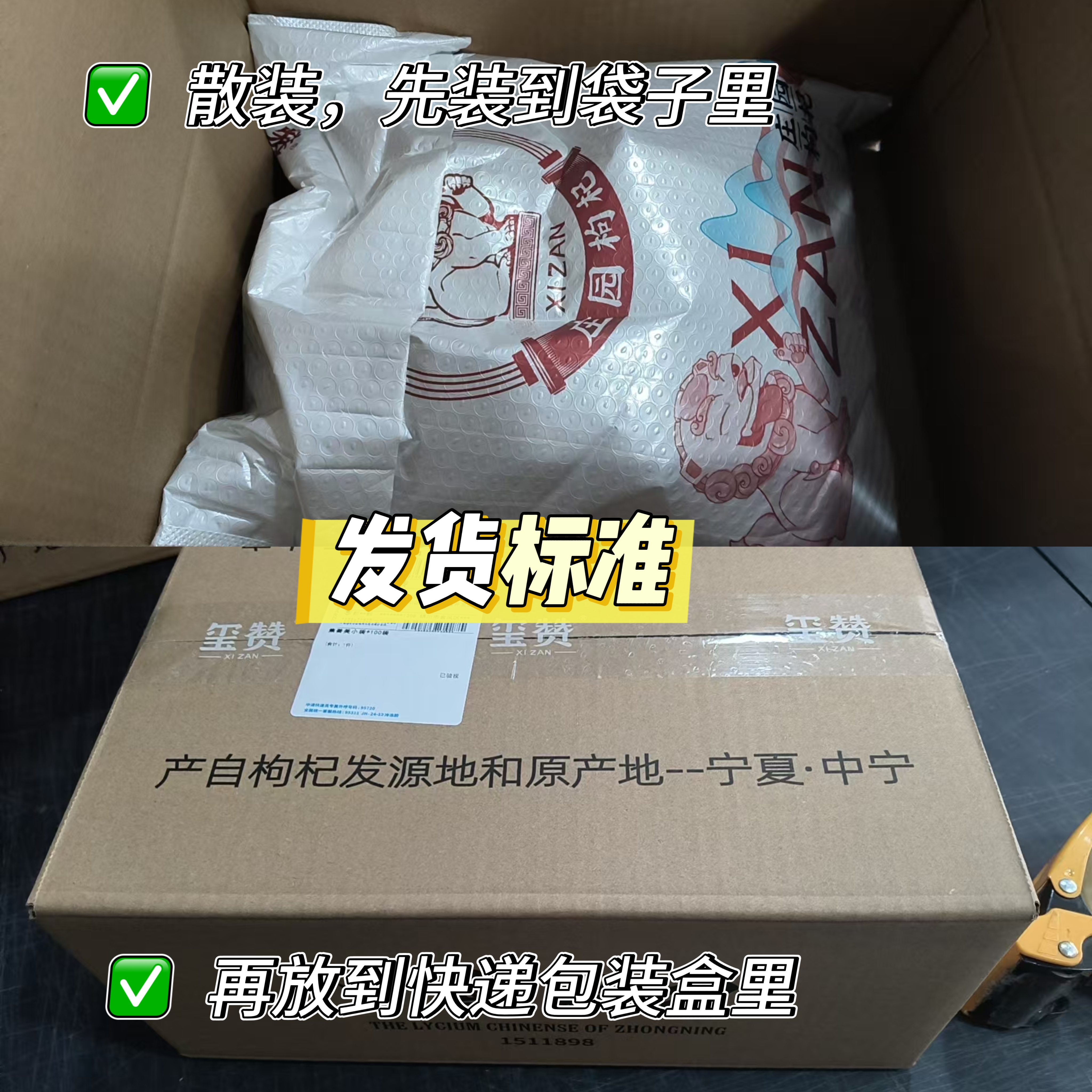 枸杞两款包装随机发,同一个工厂生产,品牌不一样:
