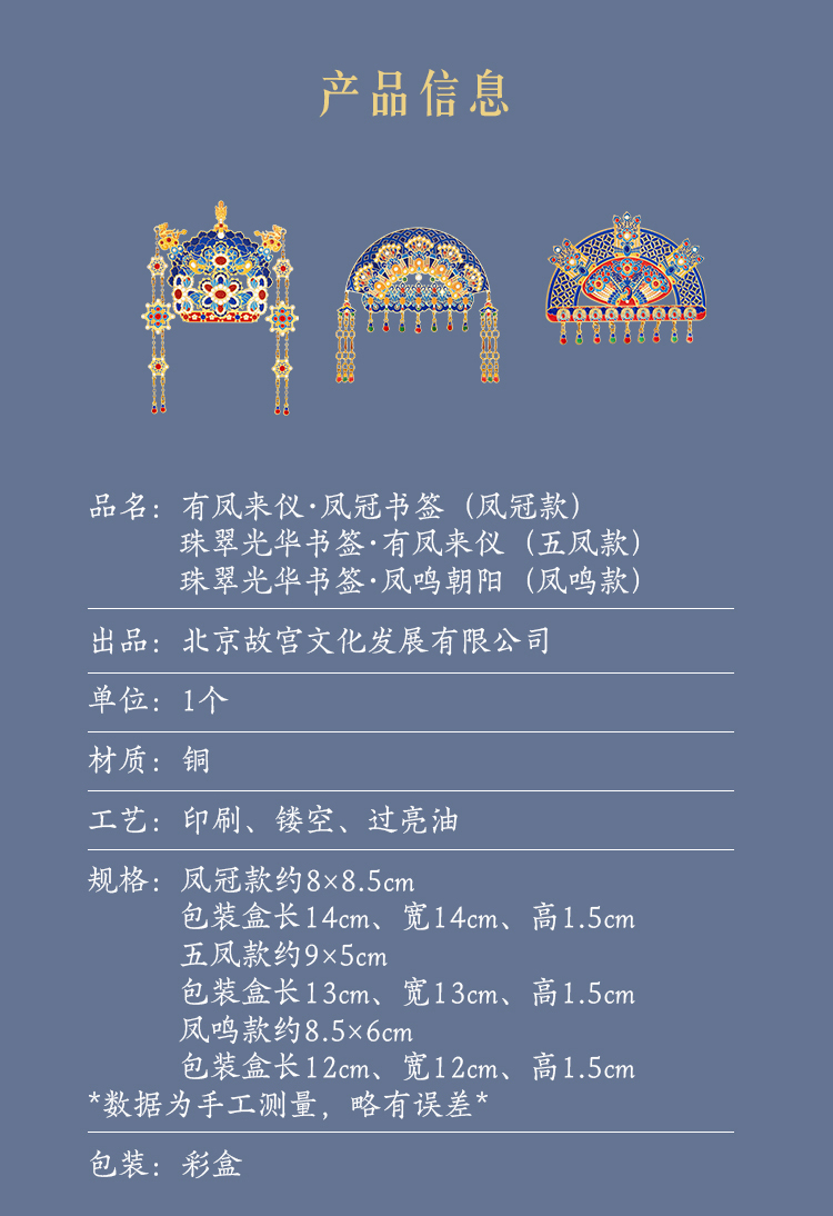 【故宫书签】有凤来仪凤冠金属书签古典中国风博物馆文创礼物伴手礼