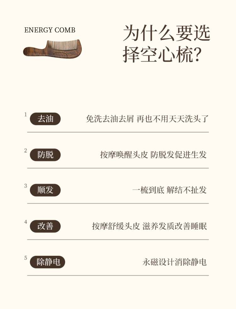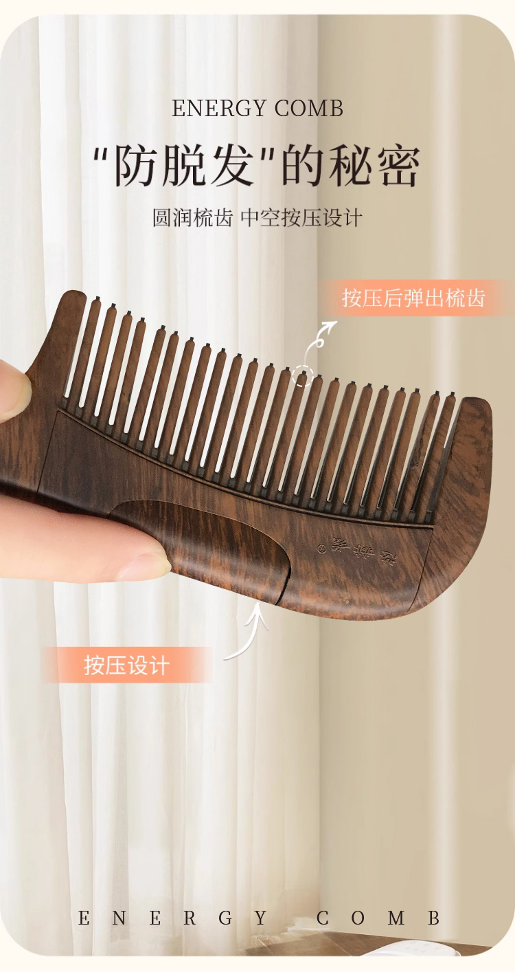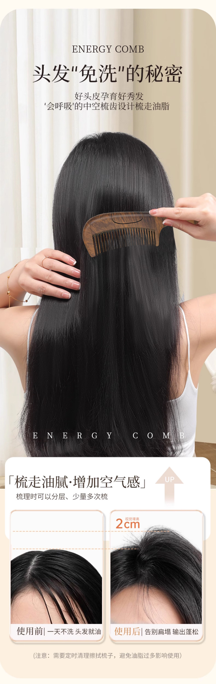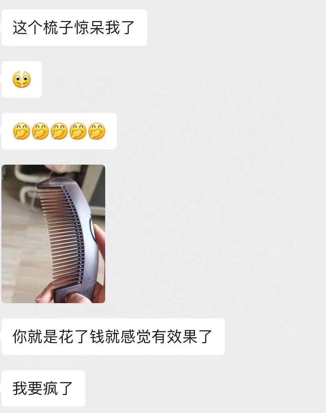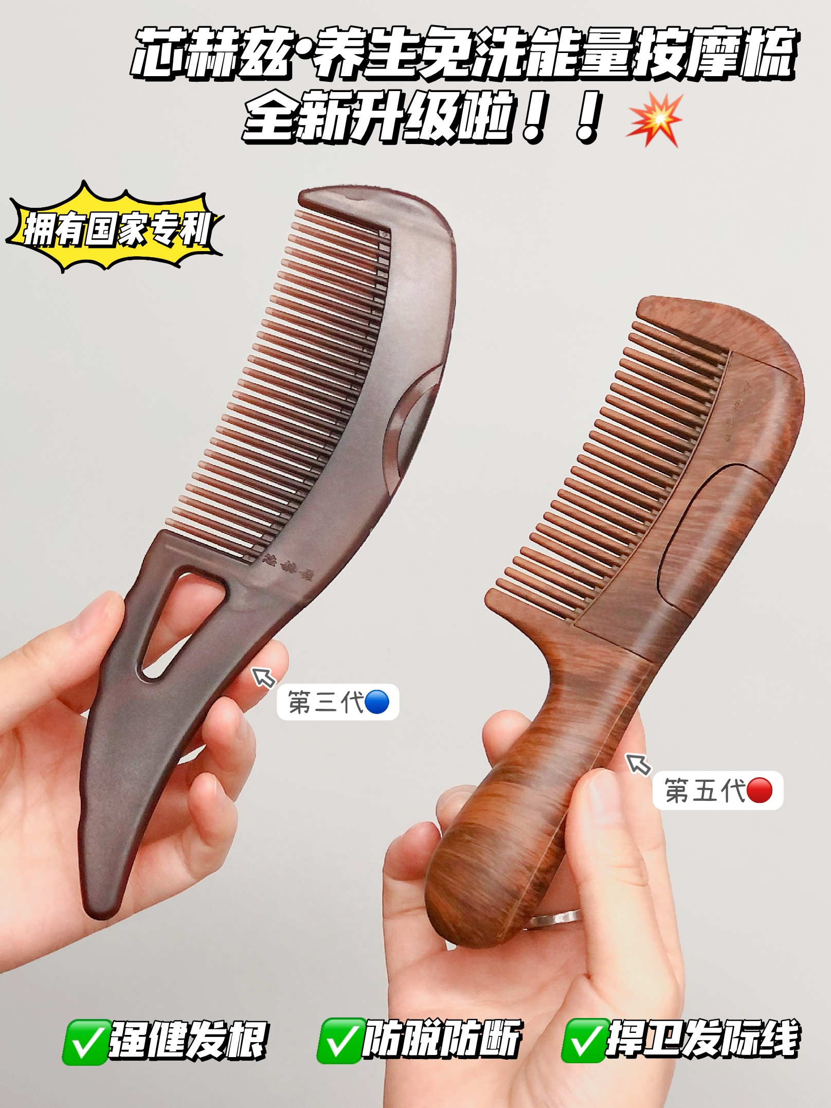 普通的梳子梳齿太硬,易伤头皮,头发打结很难梳开 不仅头皮刺痛,还容易缠上头发,每次梳头都觉得很累 自从遇到了芯赫兹第五代免洗头梳子,头发越梳越顺了,没有了之前梳头的烦恼 而且发根越来越柔韧,很明显的感觉到脱发减少了呢 梳柄里面的能量石,携带的弱磁场,可以缓解人体“缺磁”的现象 不管是家人还是老人,以及油性发质或头皮痒等人群 都非常的适合,有益身体健康