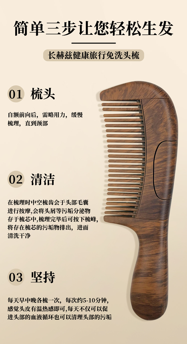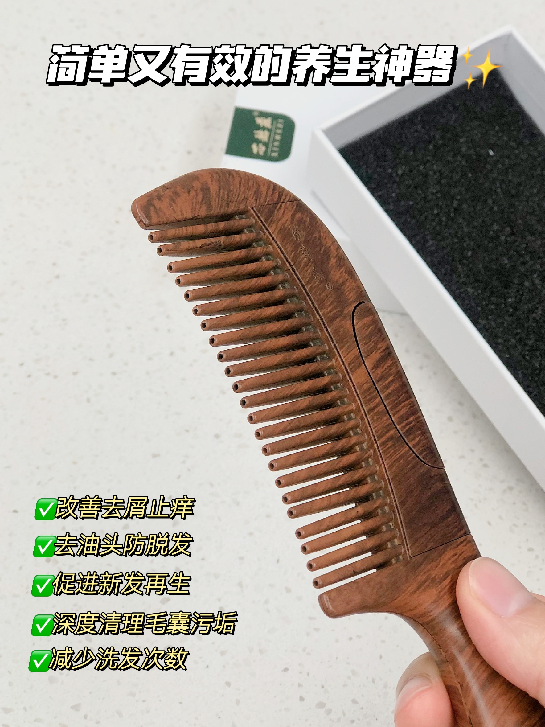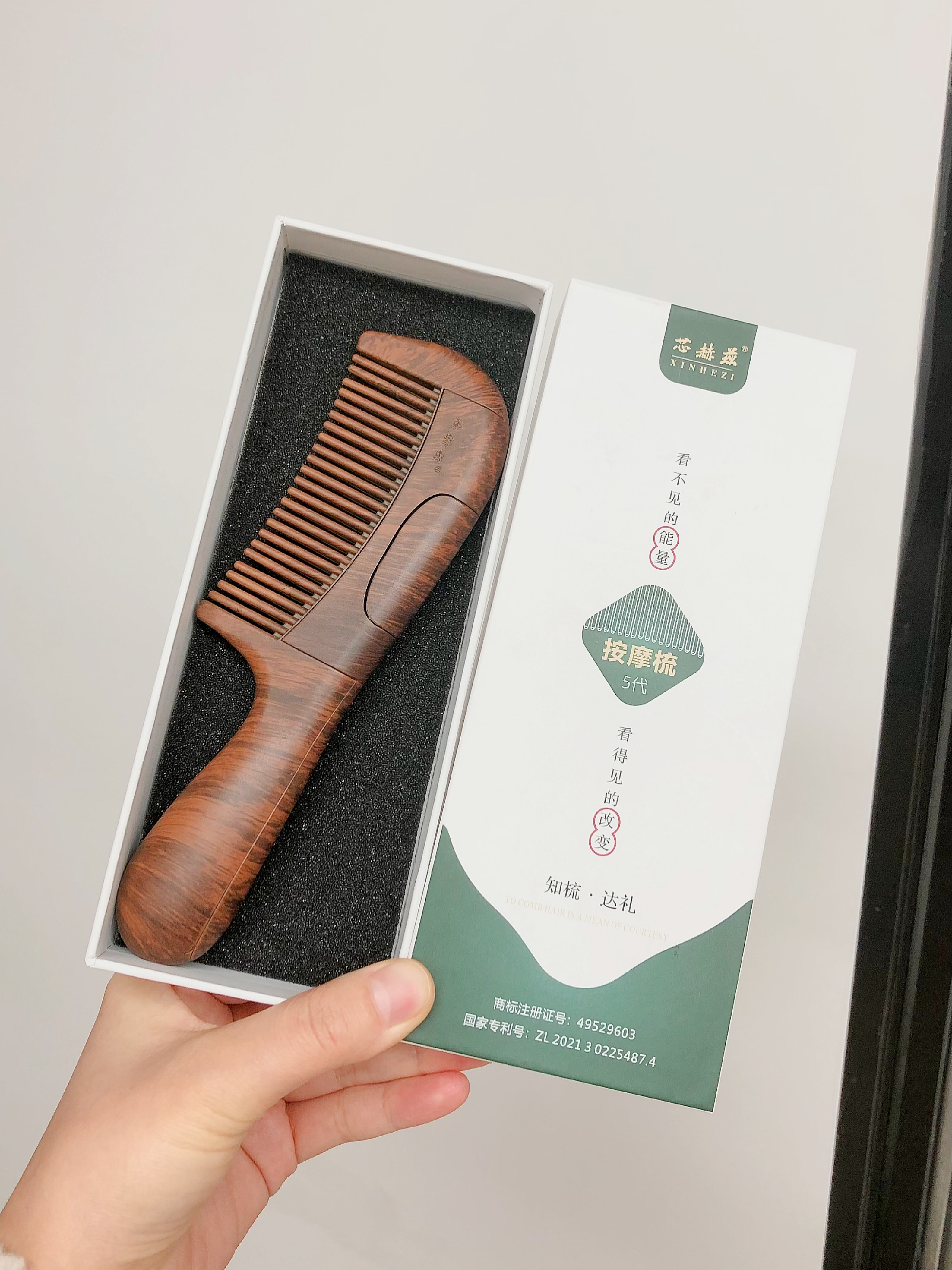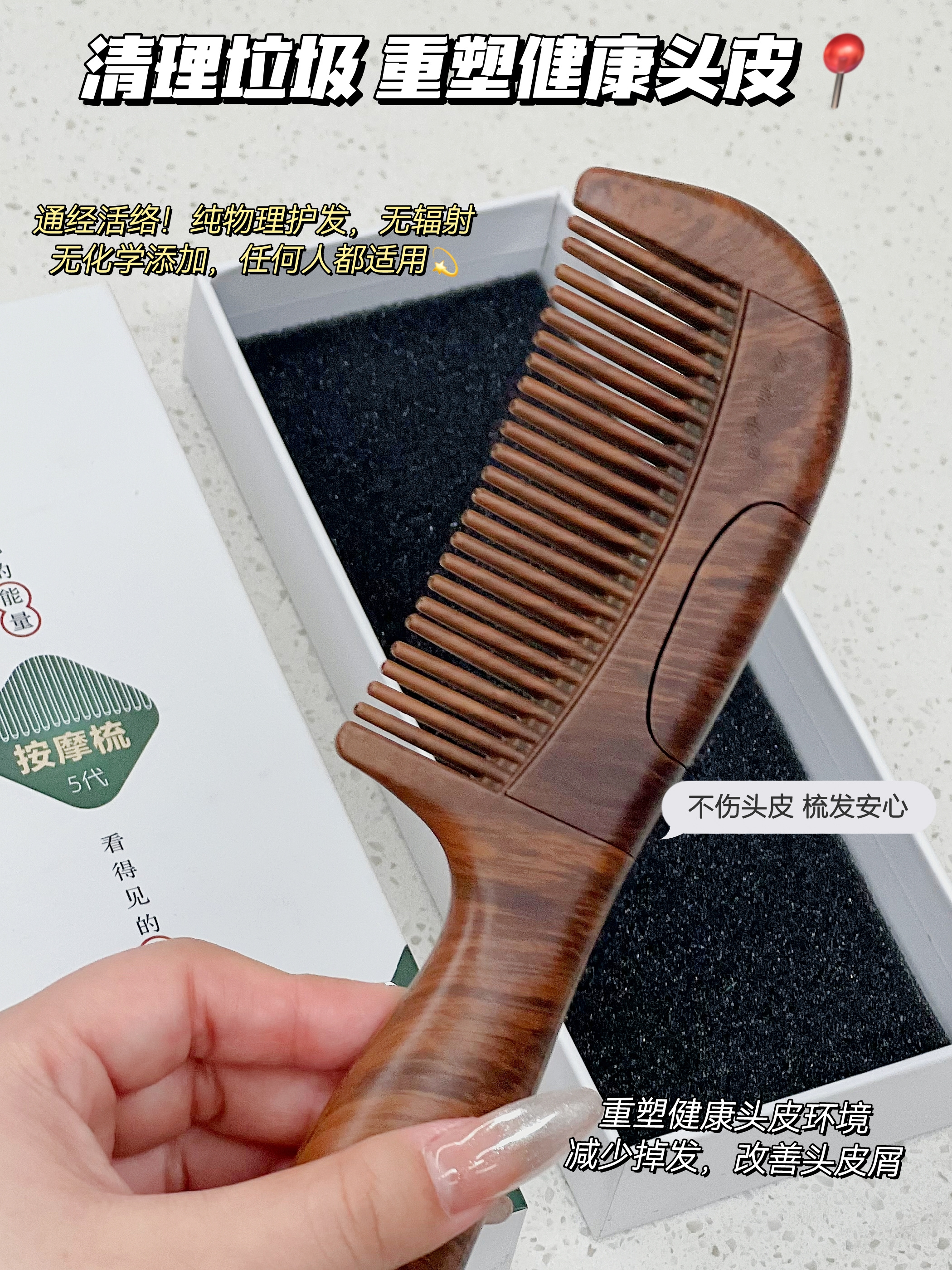 日常生活中,总有一些看似简单却又让人头大的事儿 比如梳子的清洁问题.....铛铛铛~芯赫兹第五代免洗头梳子 1.好打理:刷子刷一刷冲一冲就能洗干净了,非常方便 2.不藏头发:头发不容易勾留在梳齿上,有一两根也很好拿掉 3.对头皮友好:比塑料对头皮更好,特别便宜的塑料梳子,工艺处理的不好就很容易划伤头皮 4.摩擦力小,可以减少梳子对毛鳞片磨损 5.手感光滑,干净卫生,不起静电、能降低掉发 同时还能够减缓脑衰退,能够清除疲惫感,可以益脑醒神 具有降血压,防止脑溢血等病症的功效,能够缓解头疼,能耳聪慧目 可以对头部血液的循环系统,具有改进的功效 能具有推拿头发的作用,让秀发获得滋润,乌亮有光泽度 另外梳子是越久越好,经过长时间使用会变得更加光滑,老梳子不要丢,用起来更好哦