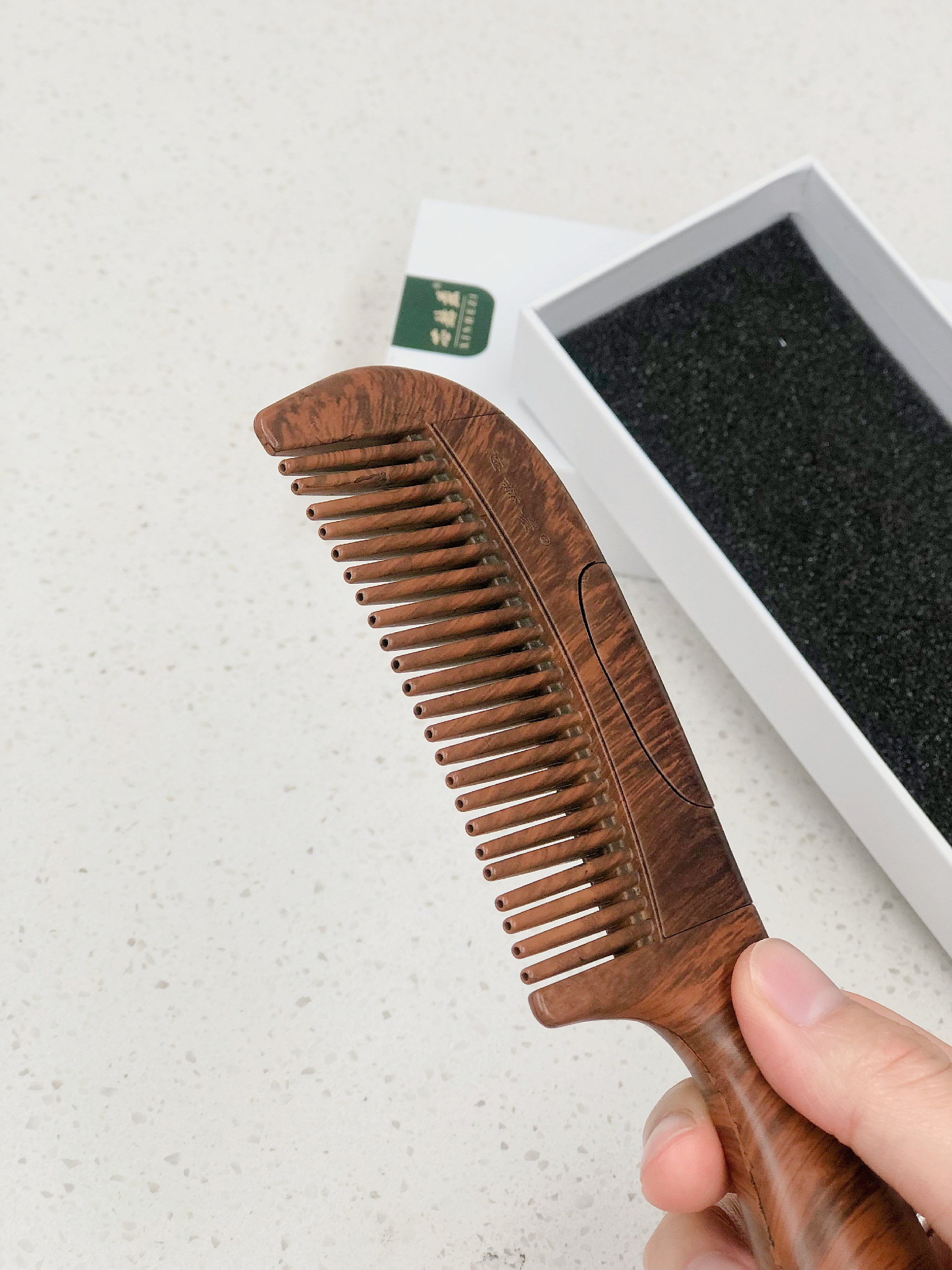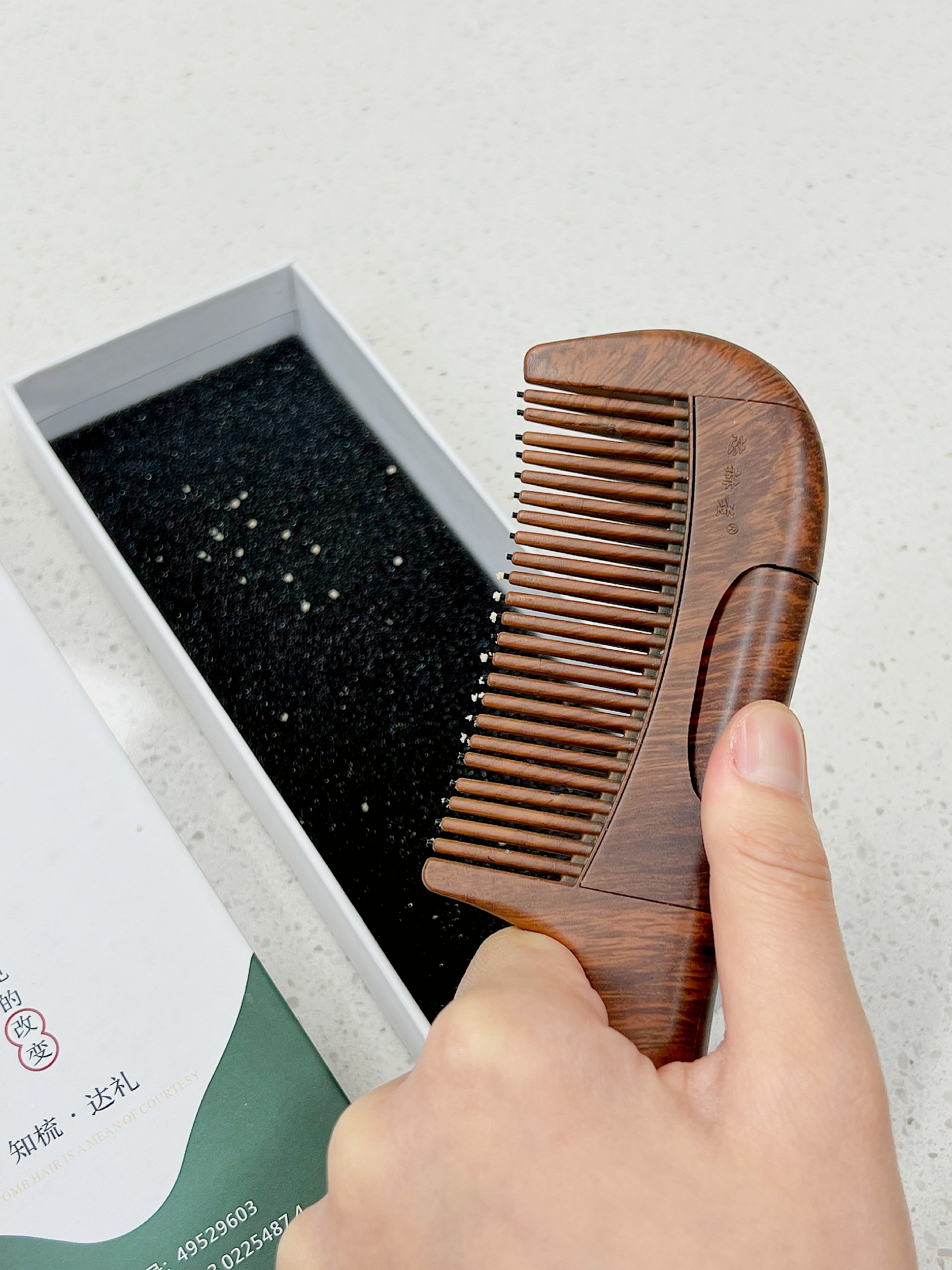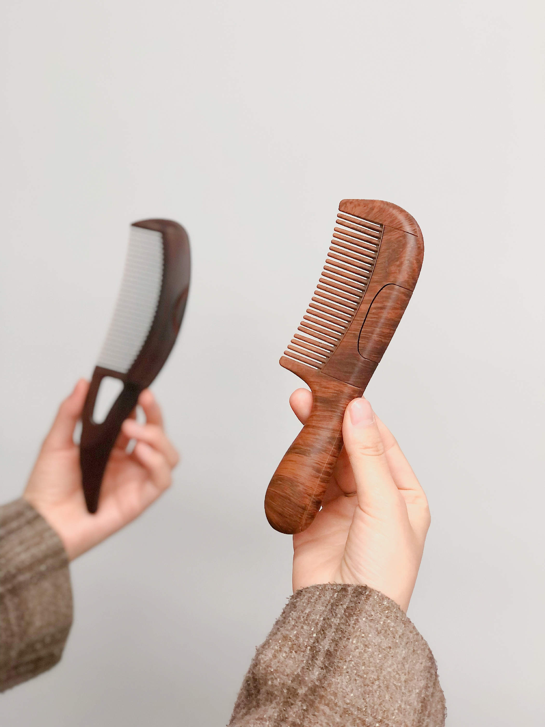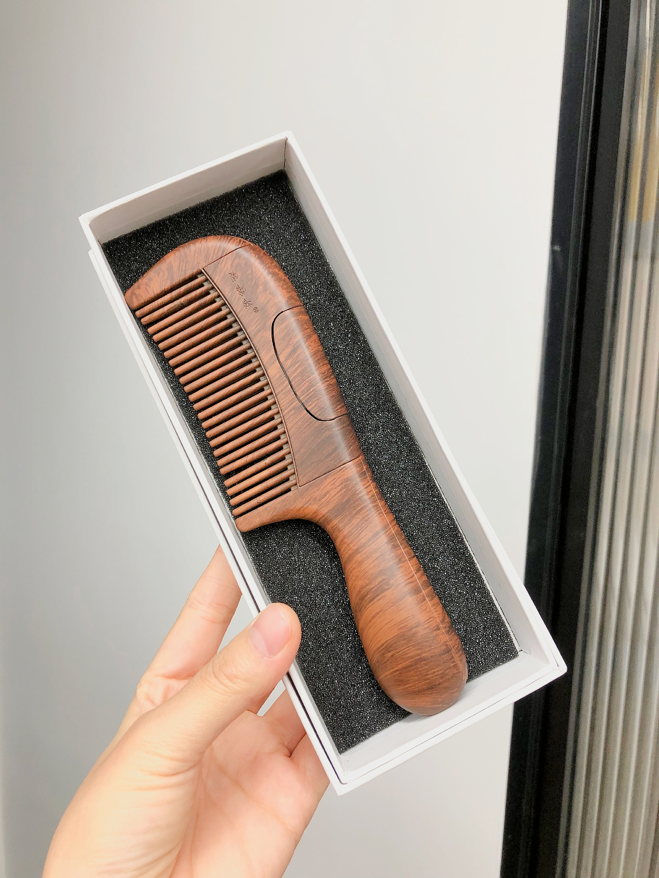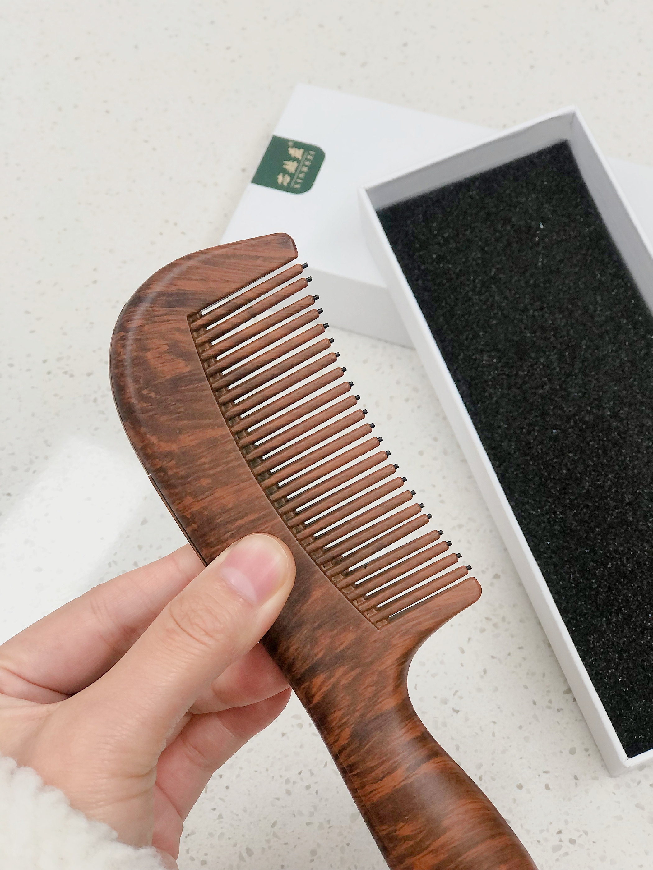 日常生活中,总有一些看似简单却又让人头大的事儿 比如梳子的清洁问题.....铛铛铛~芯赫兹第五代免洗头梳子 1.好打理:刷子刷一刷冲一冲就能洗干净了,非常方便 2.不藏头发:头发不容易勾留在梳齿上,有一两根也很好拿掉 3.对头皮友好:比塑料对头皮更好,特别便宜的塑料梳子,工艺处理的不好就很容易划伤头皮 4.摩擦力小,可以减少梳子对毛鳞片磨损 5.手感光滑,干净卫生,不起静电、能降低掉发 同时还能够减缓脑衰退,能够清除疲惫感,可以益脑醒神 具有降血压,防止脑溢血等病症的功效,能够缓解头疼,能耳聪慧目 可以对头部血液的循环系统,具有改进的功效 能具有推拿头发的作用,让秀发获得滋润,乌亮有光泽度 另外梳子是越久越好,经过长时间使用会变得更加光滑,老梳子不要丢,用起来更好哦