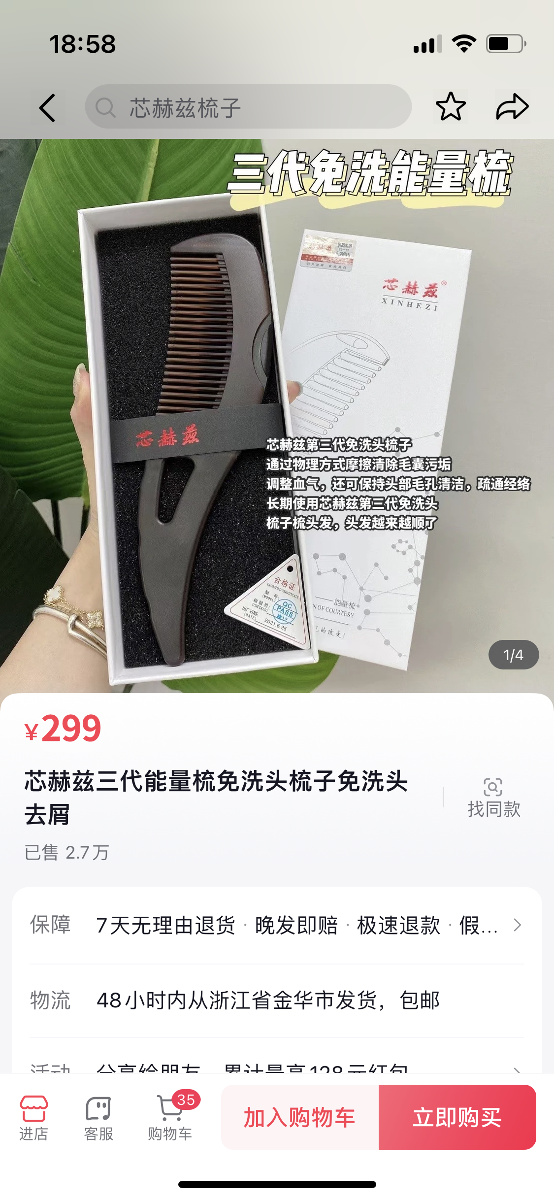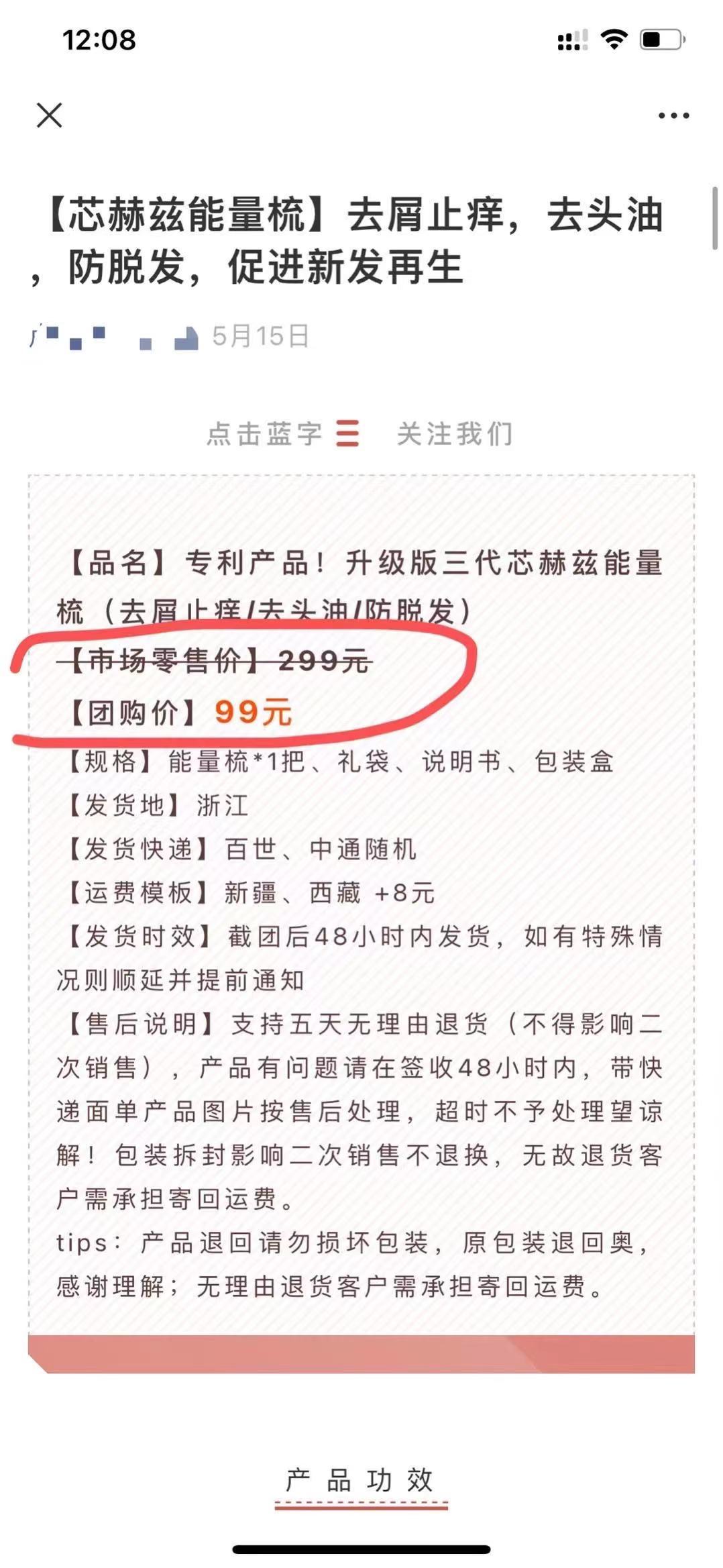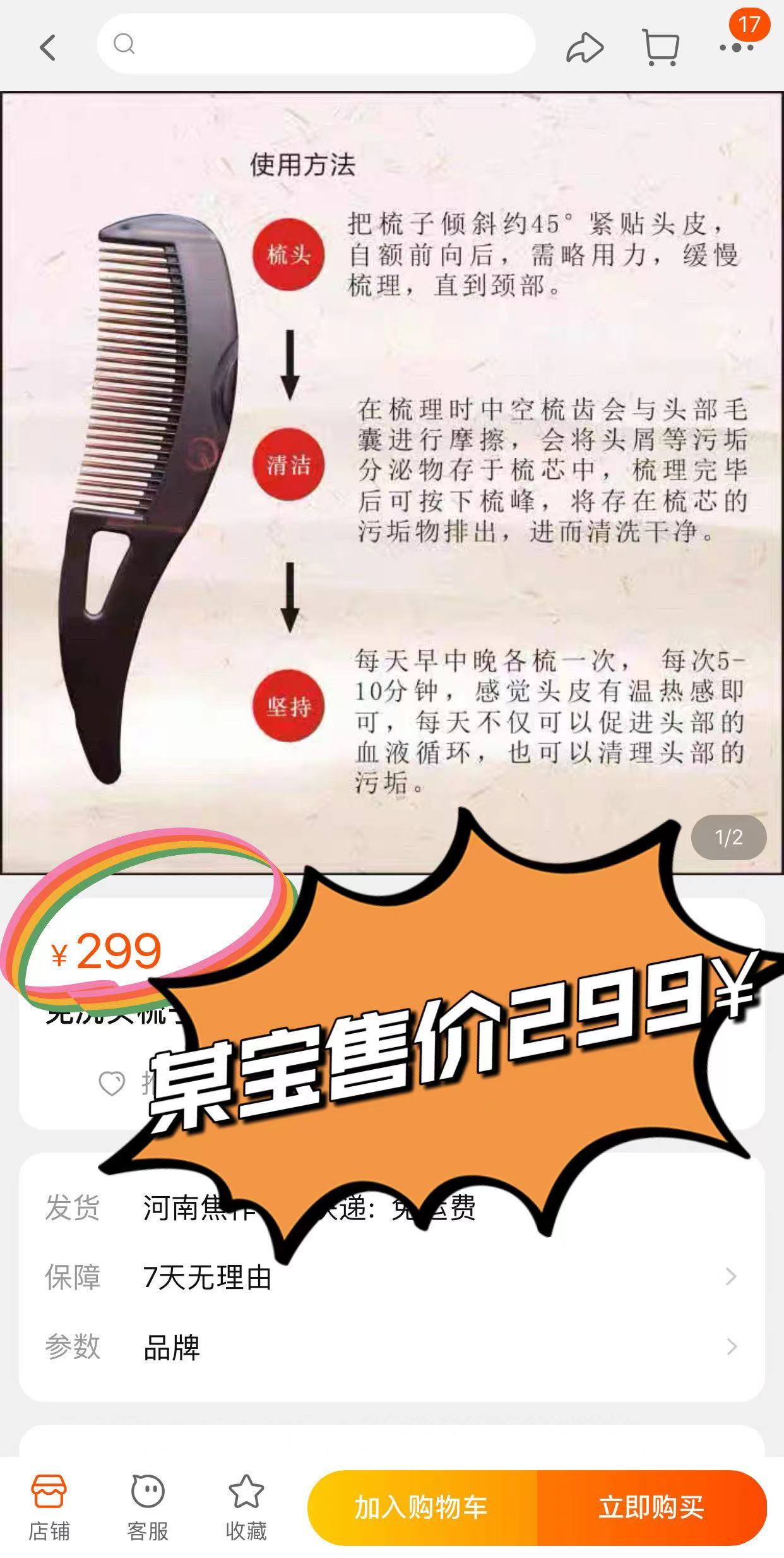 某音、某宝爆款芯赫兹第三代免洗头梳子 每个售卖299,销量还是随随便便2万+ 随便一个团购销售量打底都是成千上万单