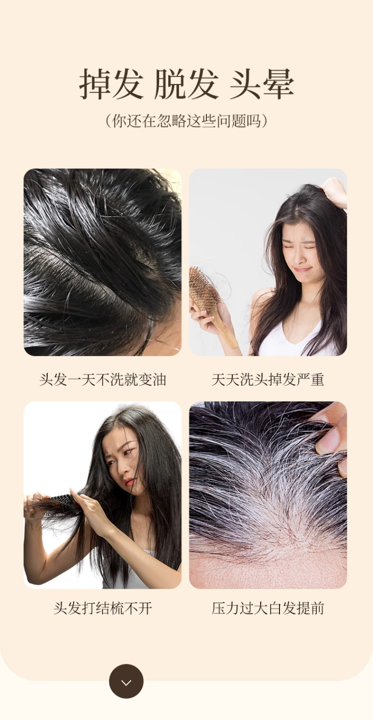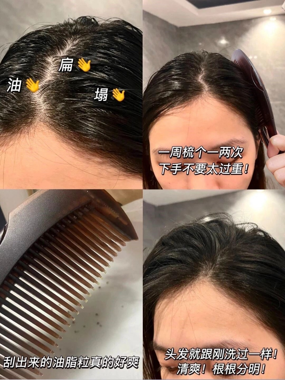 其实养护头皮头发与脸部护肤一样,都需遵循一个原则 那就是洗的干净但不拔干,不过敏、最好能舒缓修复 除了日常洗头之外,最重要的护理头皮方式就是梳头了 梳头可以说是一种物理按摩法,我们古人就非常提倡勤梳头 经典著作《黄帝内经》中就曾记载:“一日三篦,发须稠密” 多梳头可以改善头部的血液循环,让头发获得滋养,牢固发根