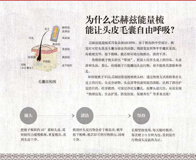 芯赫兹能量梳子不是使用后立即白发变黑! 不是脱发立即变多!是让你立即看到毛囊清理出来的垃圾毒素! 庄稼长不好,是土地问题!头发长不好,是毛囊问题! 所以清理毛囊垃圾毒素非常重要! 疏通筋络、活血化瘀还能改善睡眠 预防改善脑梗、脑溢血、脑血栓、颈椎疼痛等等! 头皮毛囊垃圾清除掉之后,黑色素营养上来了,头发自然就变黑了! 看着人家一个个都脱单了,而你只有脱发 只能强颜欢笑着调侃自己“可怜未老头先秃” 有的人正在为三千烦恼丝辗转反侧 你却在为“一千五的烦恼丝”彻夜难眠 越失眠,越焦虑,越焦虑,越头秃……