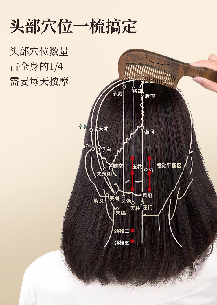 古代主张“发宜多梳” 这是因为人体的十二经脉和奇经八脉很多都汇于头部 经常梳头可以刺激各个穴位,使头部经络气血通畅,促进诸阳上升,百脉调顺 因而具有疏通经络、滋养头发、预防脱发,并缓解头痛、减轻疲劳的功效