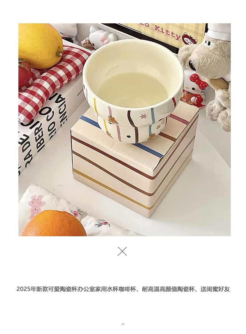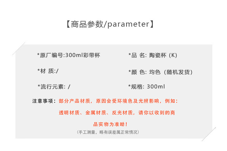 300ml彩带杯高颜值办公室家用水杯陶瓷杯-纪念日百货门店同款167544122