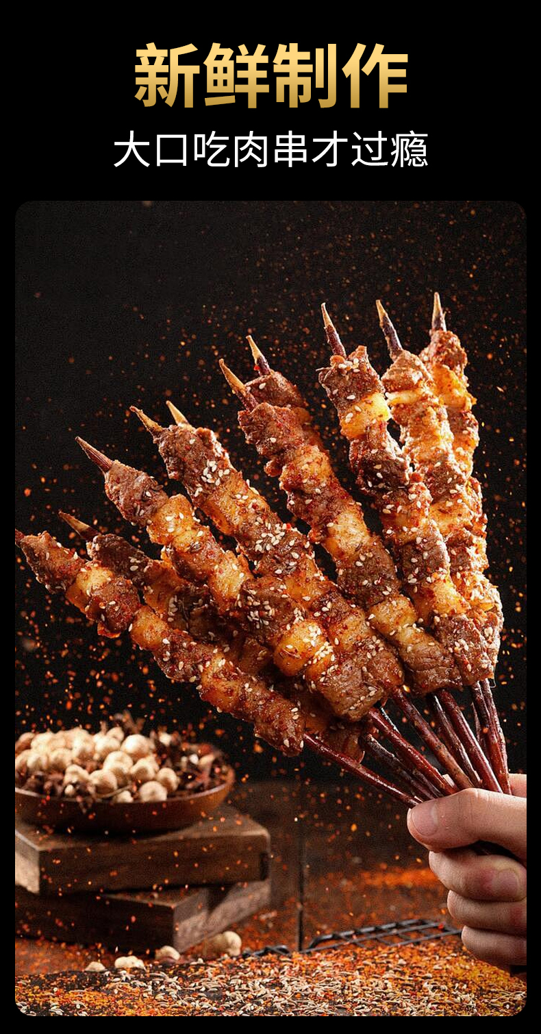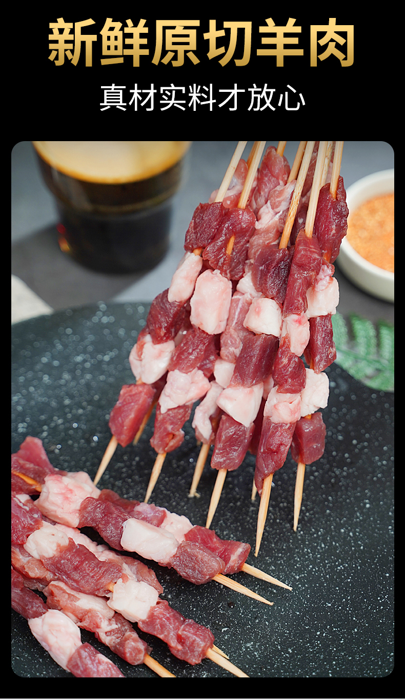 大黄鲜森牛羊串【80只】优质原切牛羊肉手工原切原味空气炸锅烧烤
