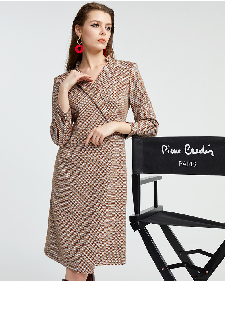 皮尔卡丹女装百搭通勤刺绣V领长袖连衣裙P0427DL20B0