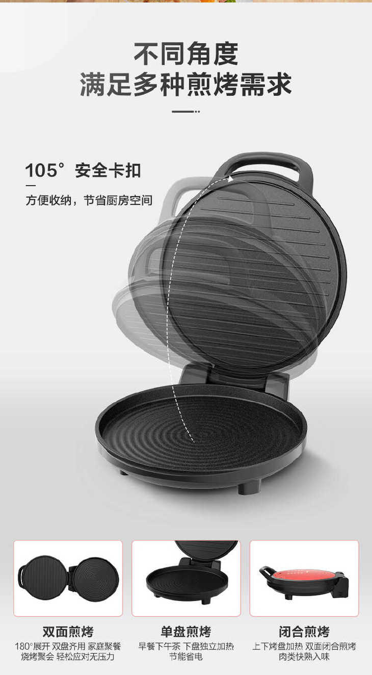 美的(510850)JKE3412煎烤机 加深悬浮烤盘 波纹匀热 双面加热 彩色上盖装饰