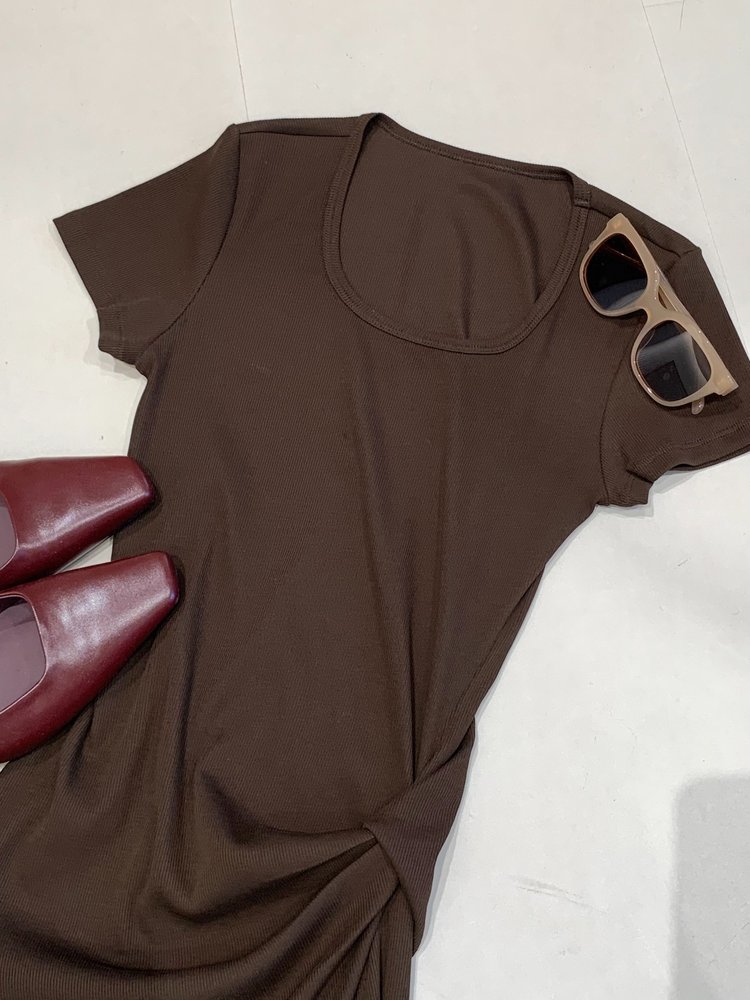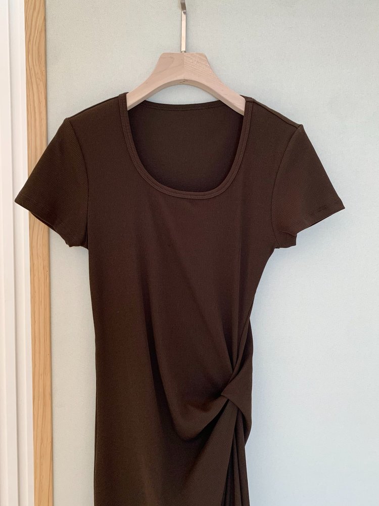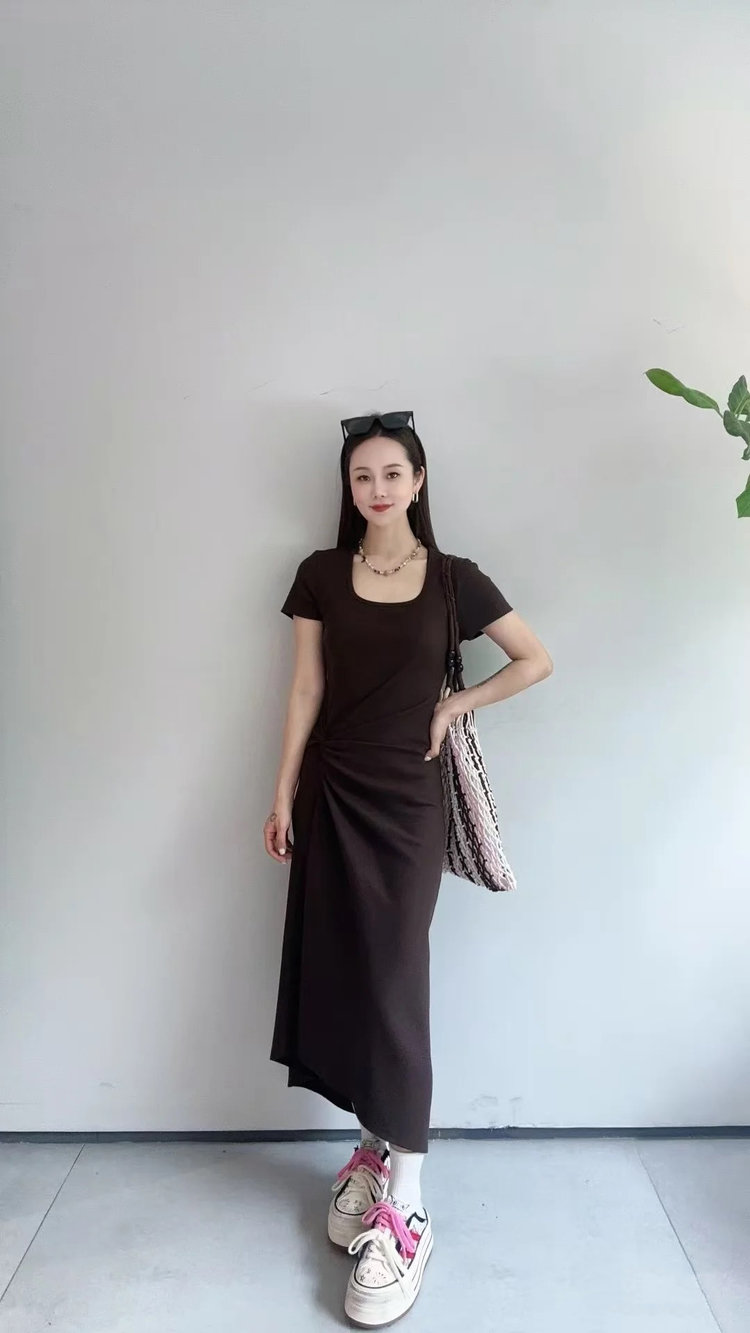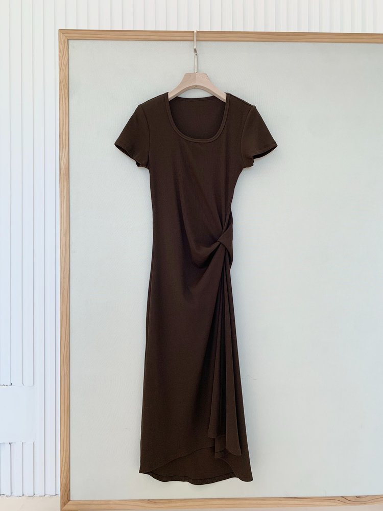 【高品质私服】【MC扭结高腰短袖正肩长裙】质地细腻柔软,亲和肌肤・舒爽通透,提气质・抬气场,简约不简单G1448-CC【无标出货 介意慎拍】