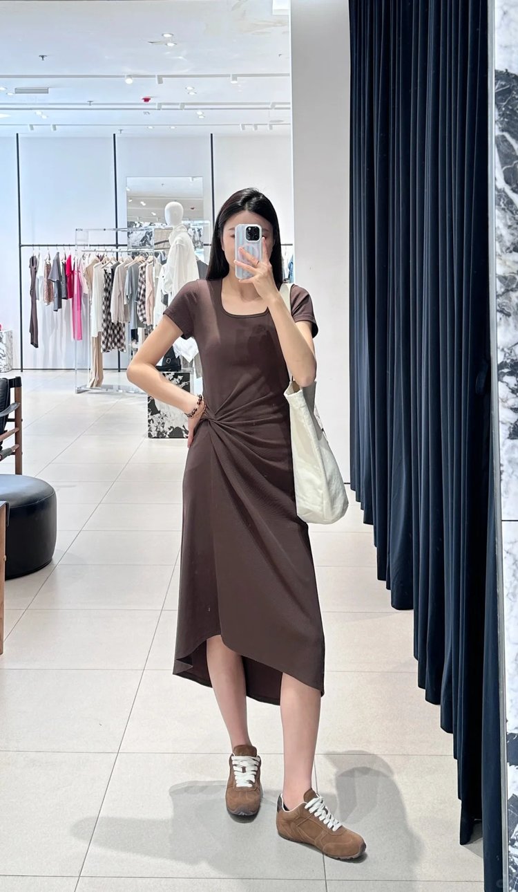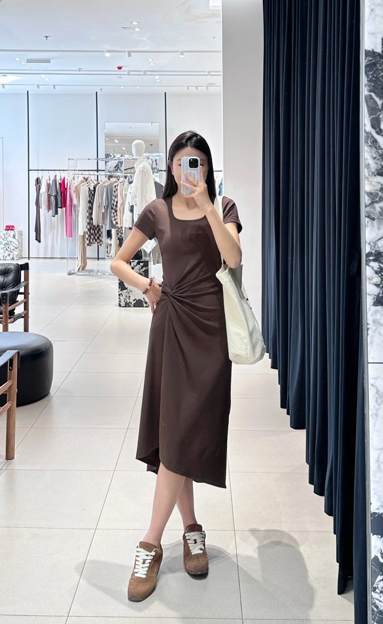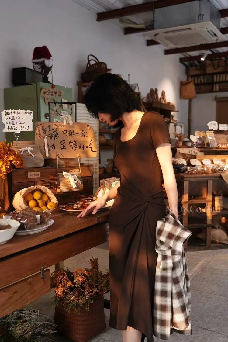 MOCO扭结长裙|深咖色艺术感战袍·秒变「纸片人」的骨骼美学!