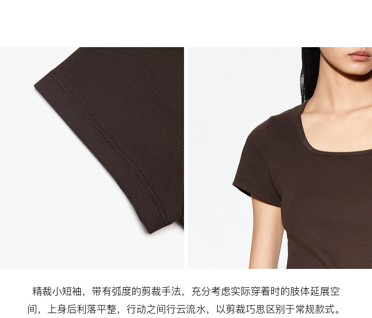 精裁小短袖,带有弧度的剪裁手法,