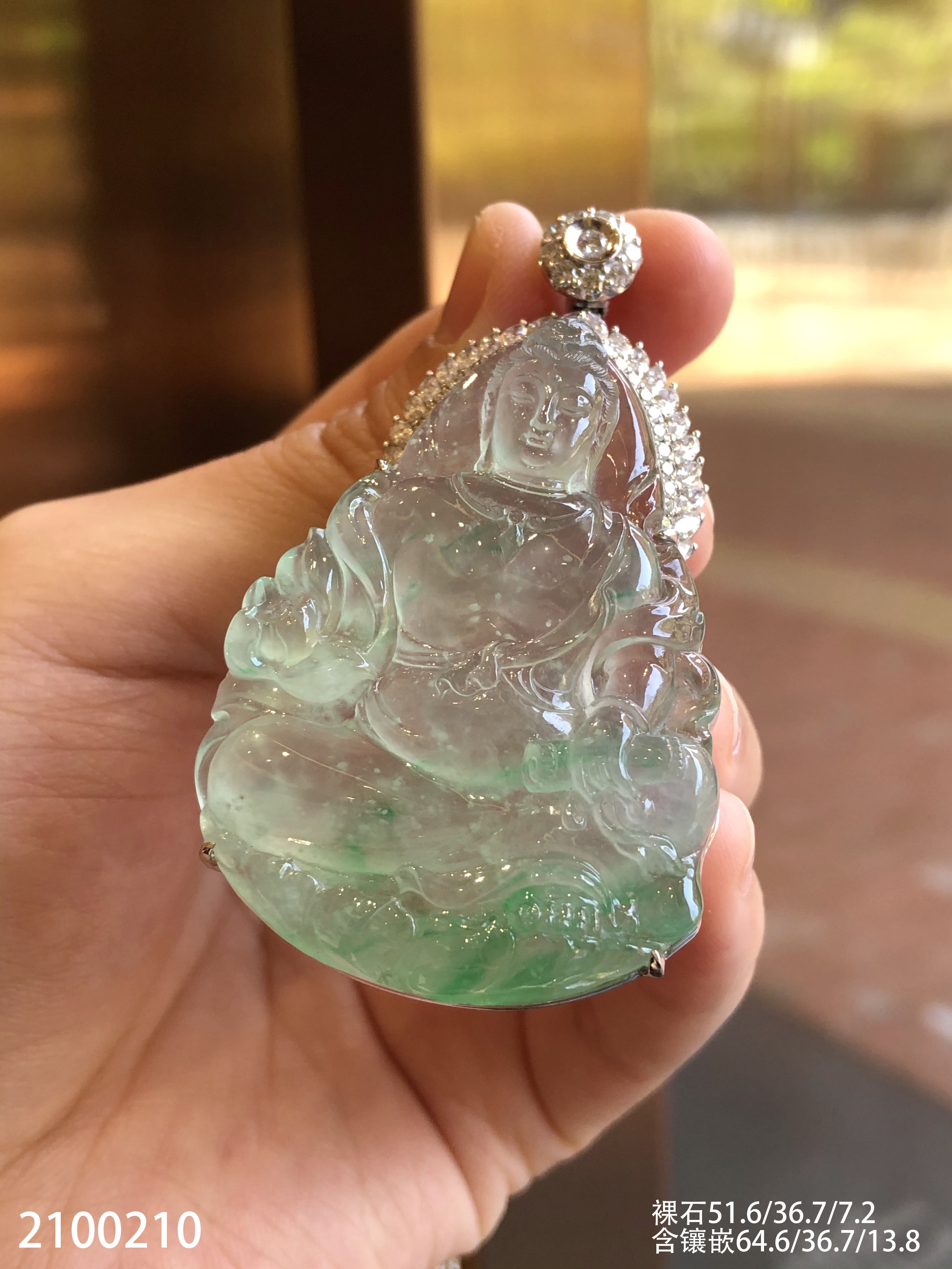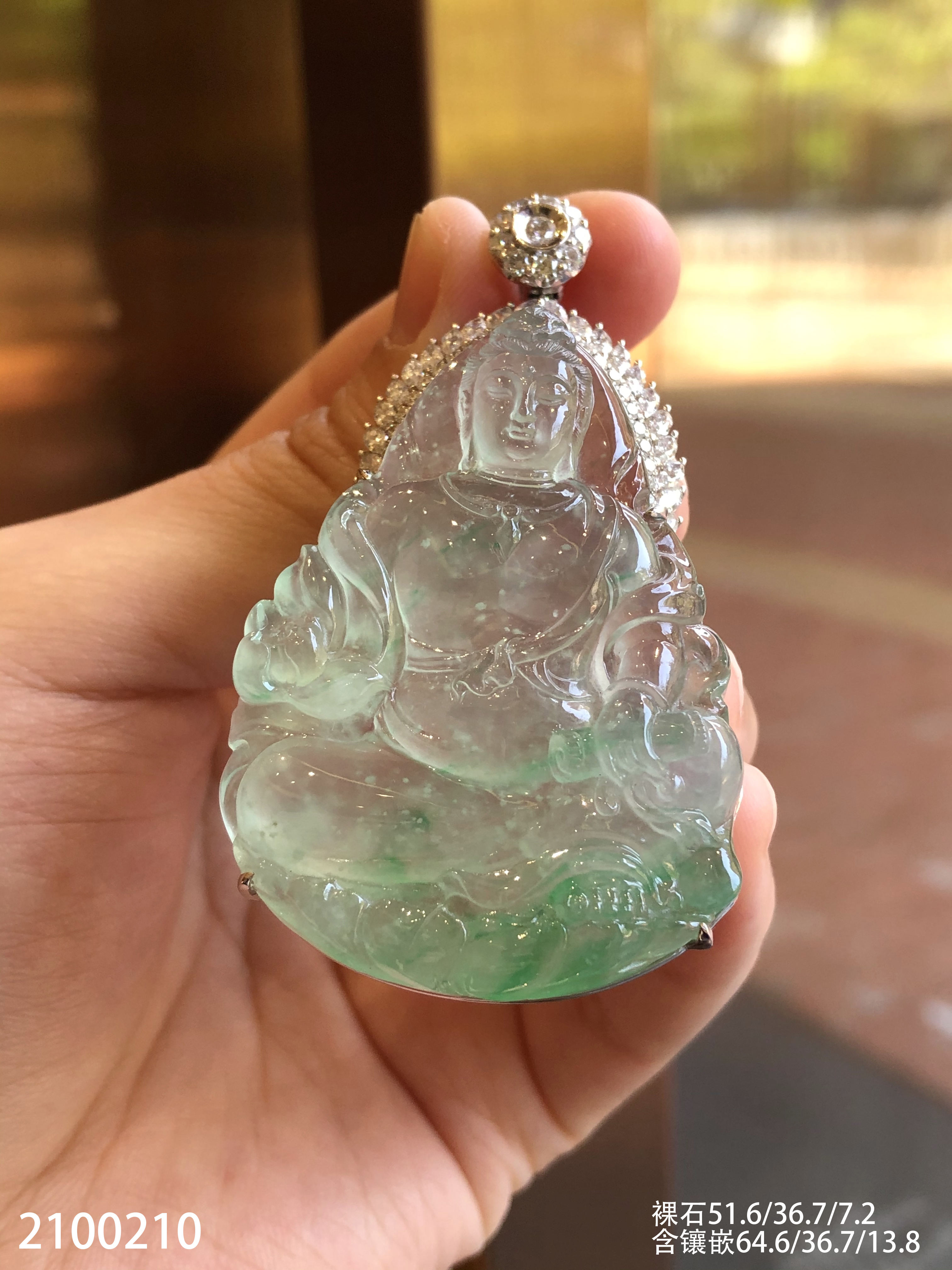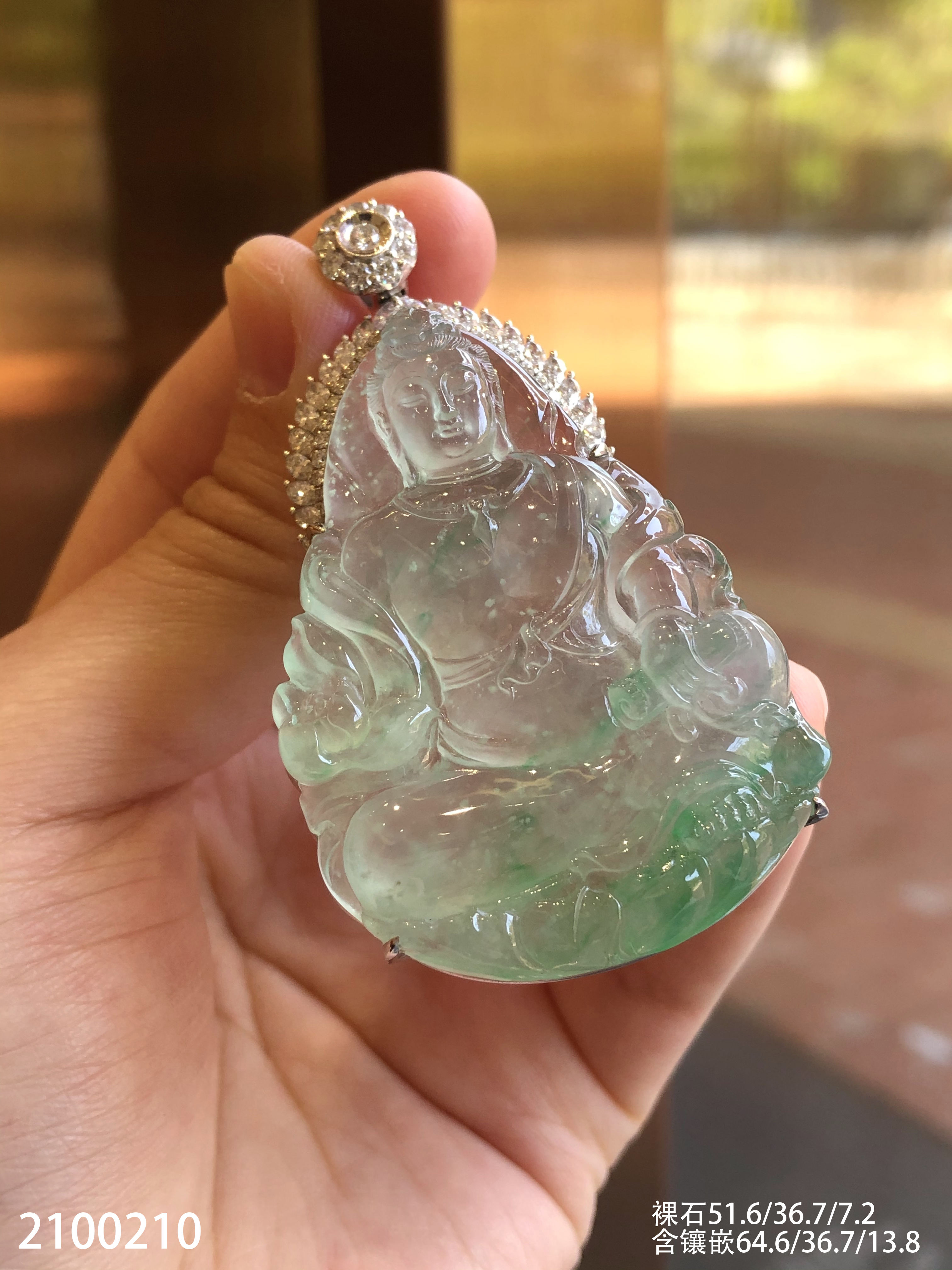 高冰木纳飘翠持经观音吊坠【2100210】具体价格微信咨询