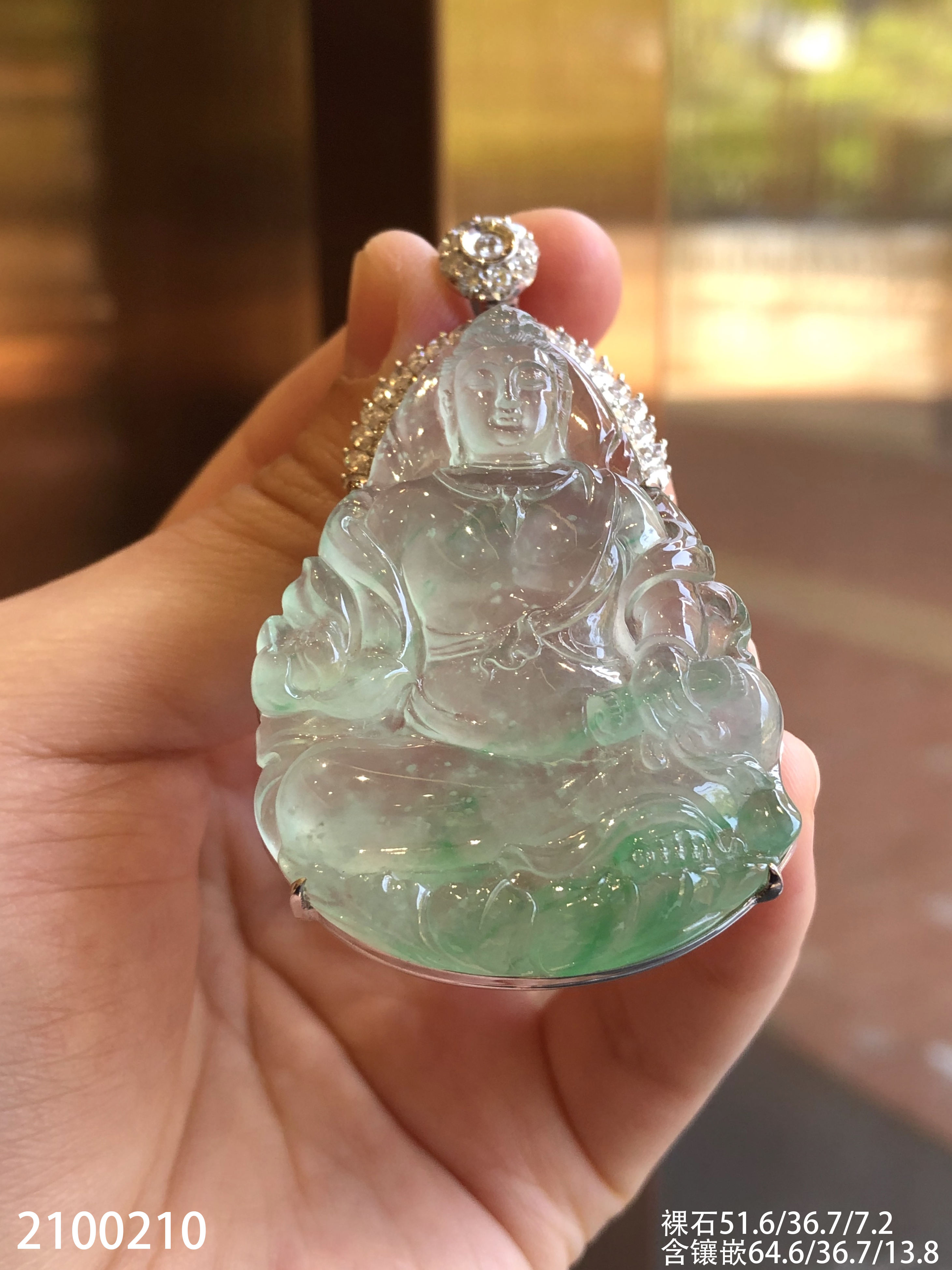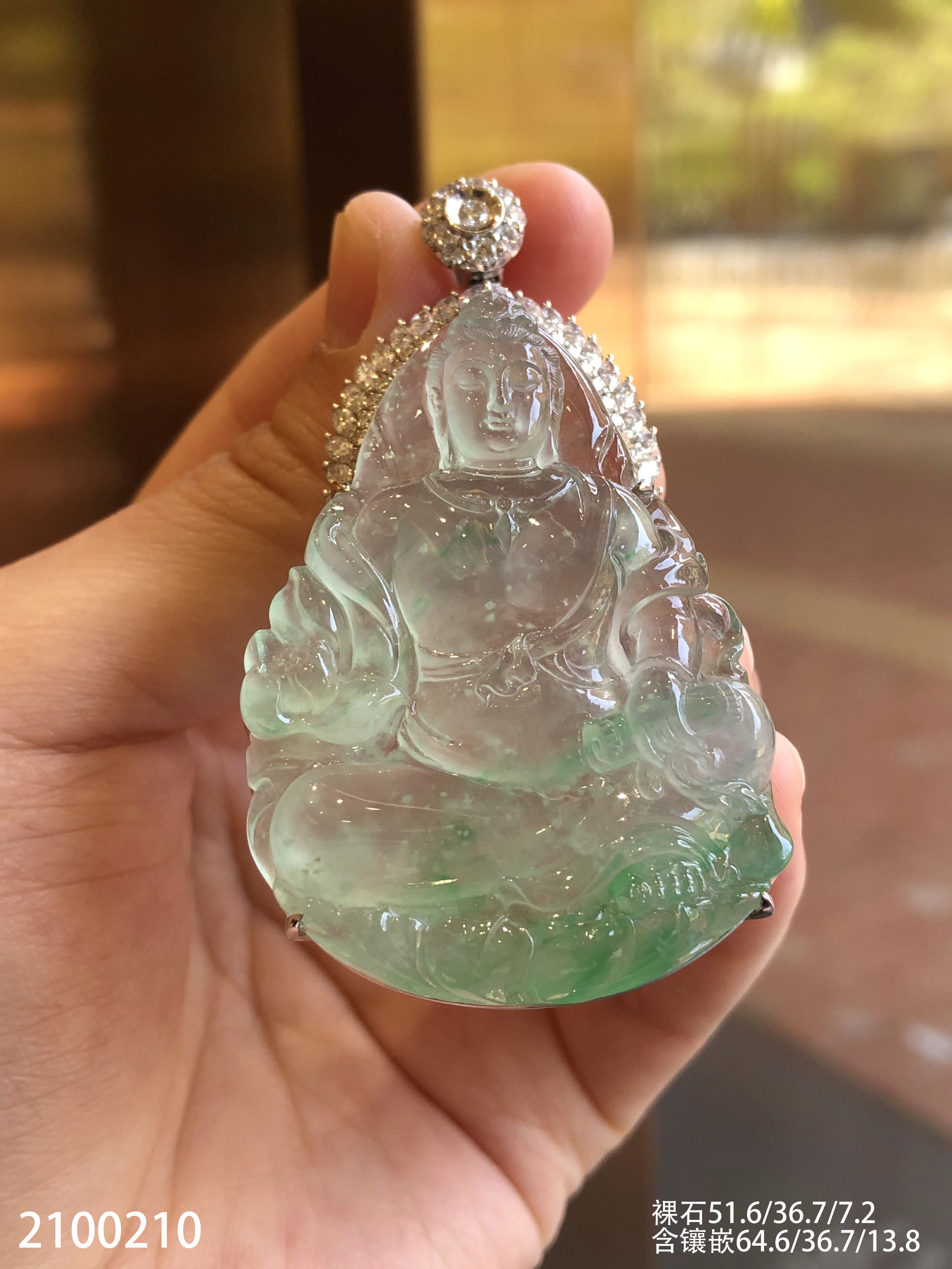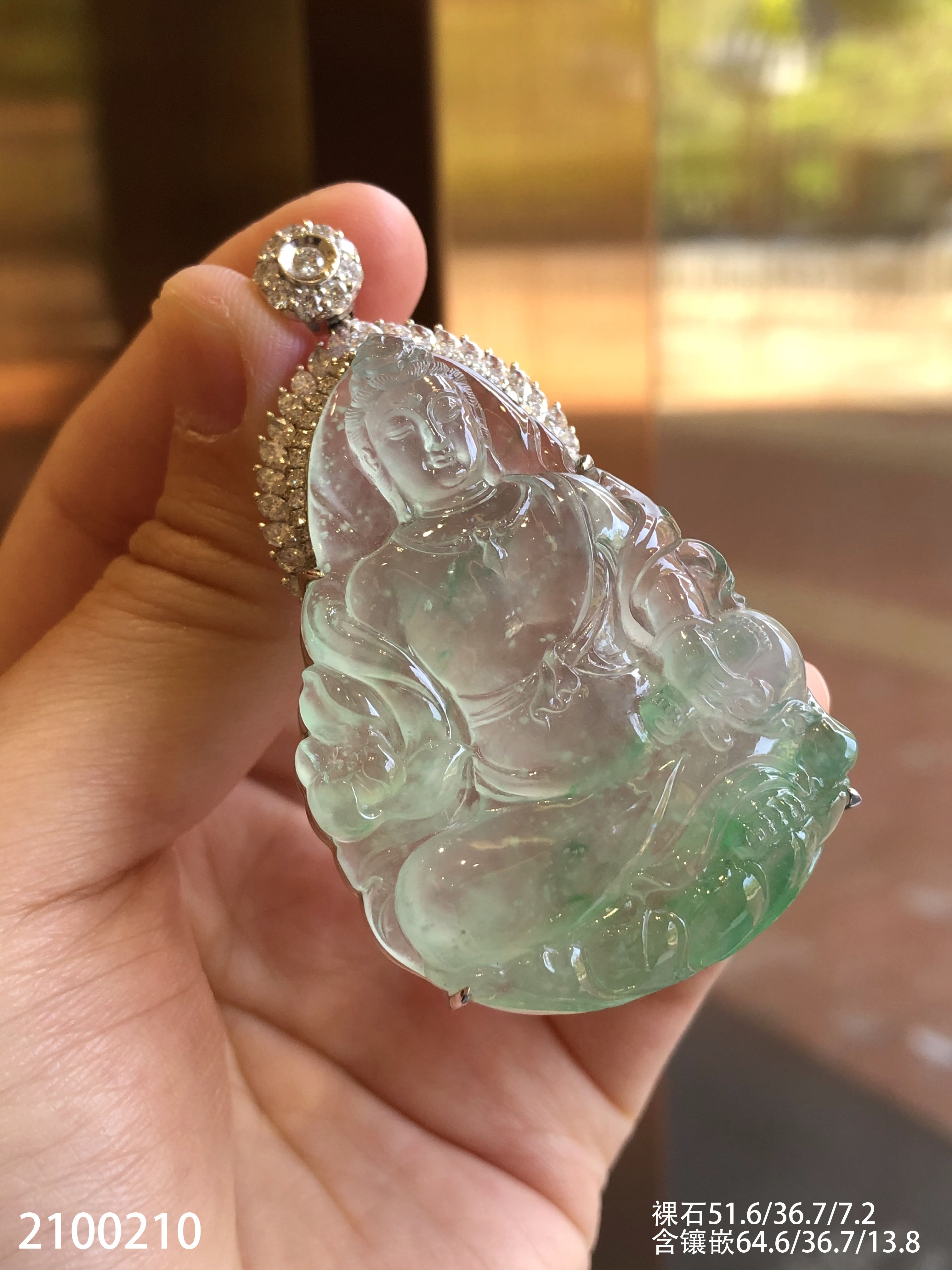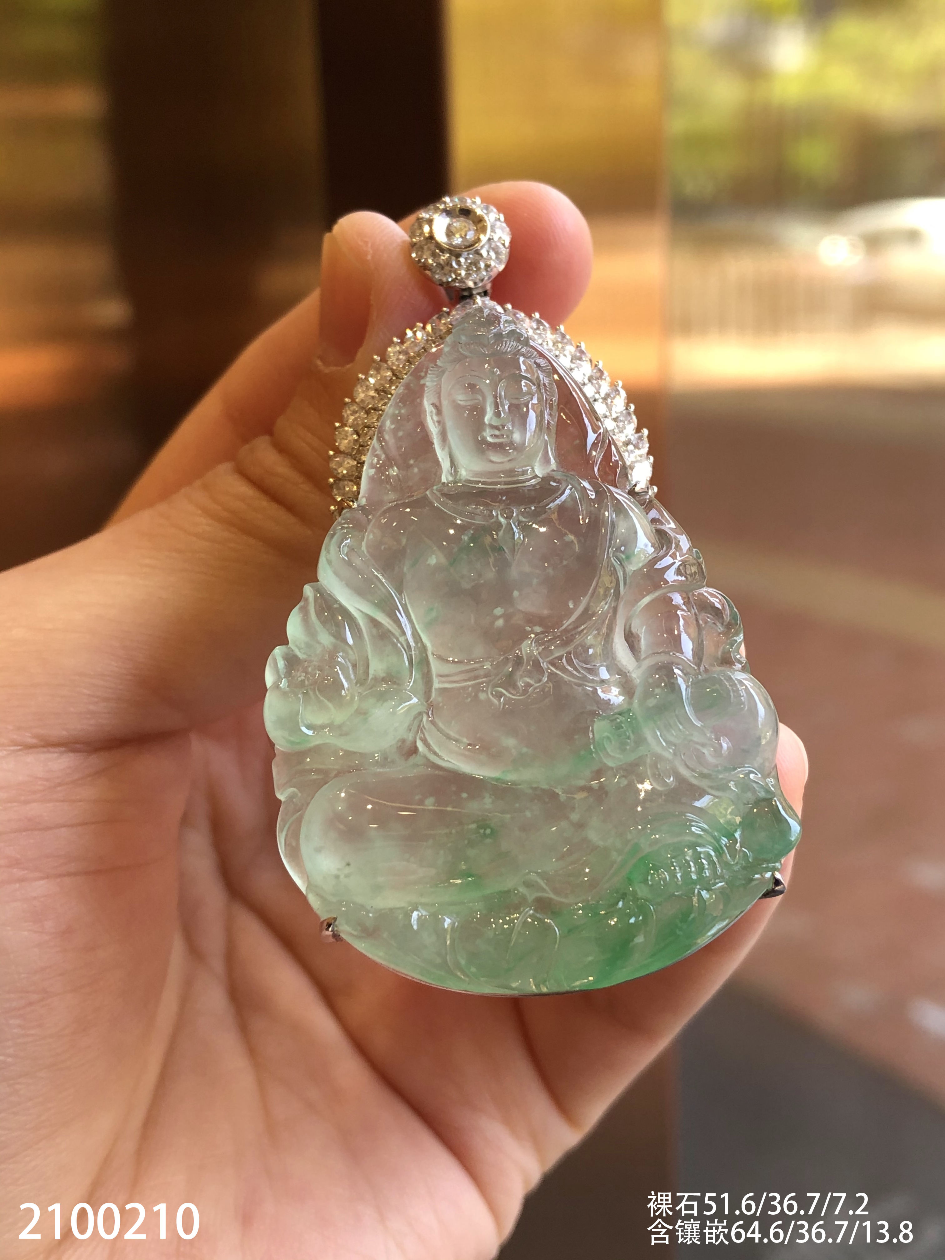 高冰木纳飘翠持经观音吊坠【2100210】具体价格微信咨询