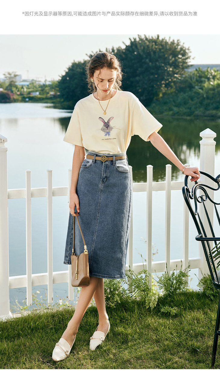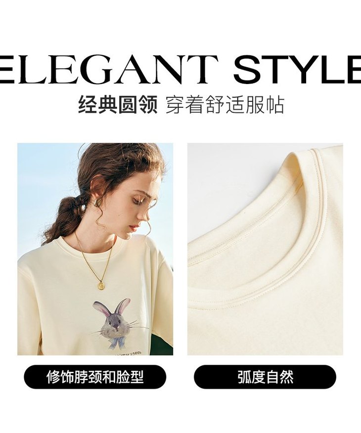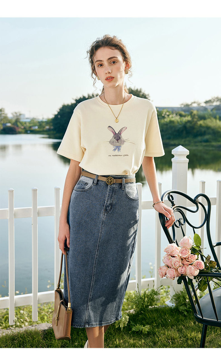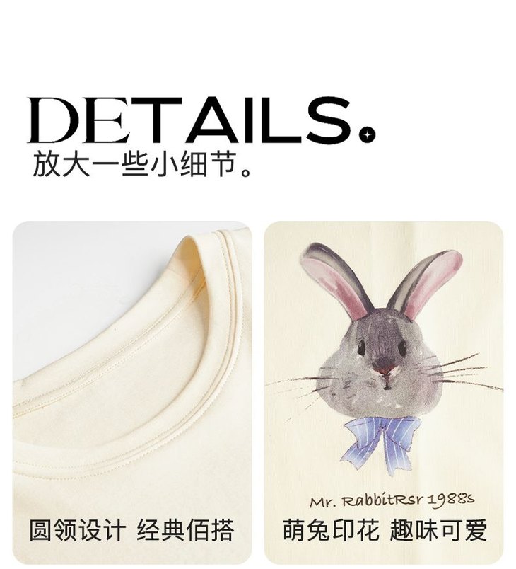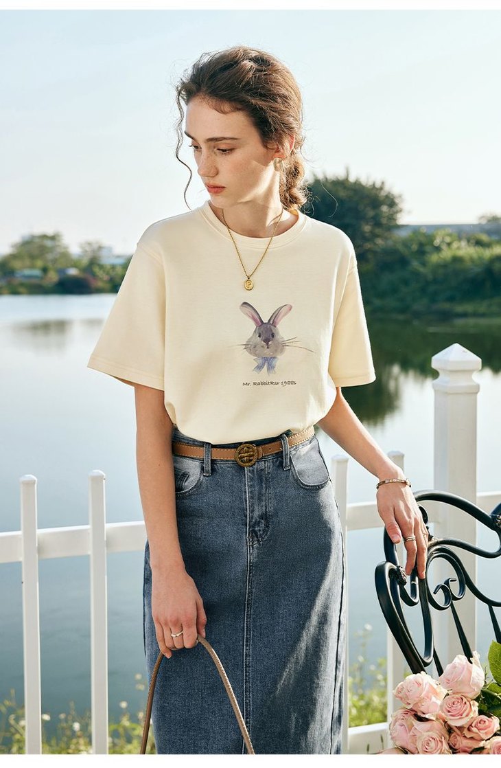 欧芮儿法式短袖T恤女夏装新款宽松卡通兔子印花上衣设计感体恤衫