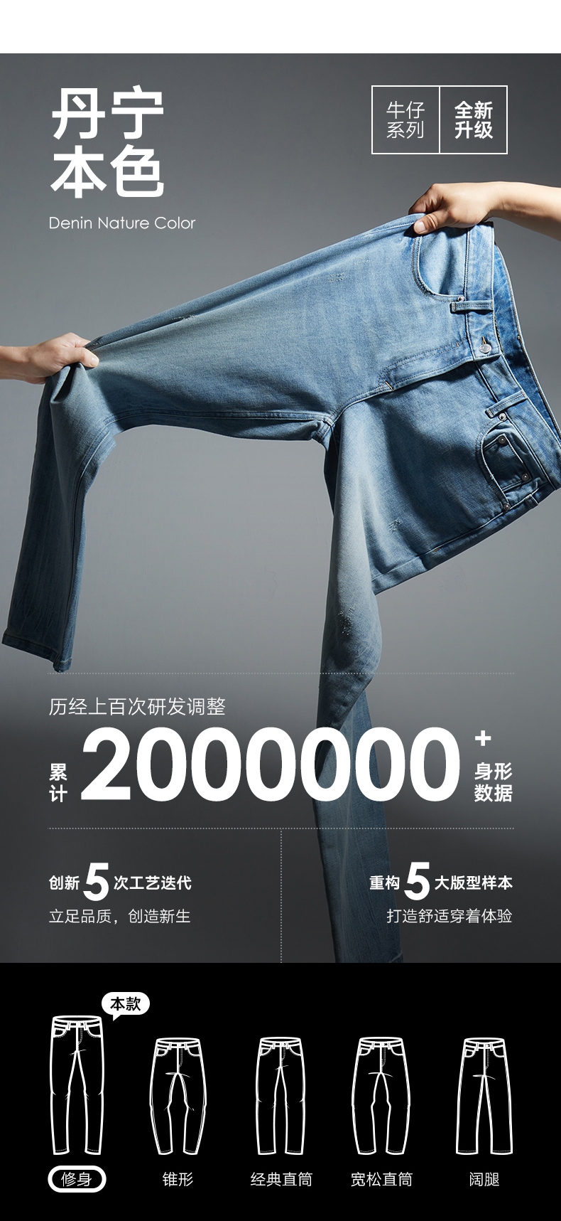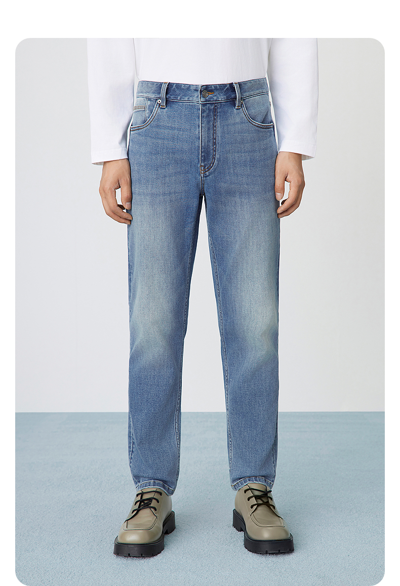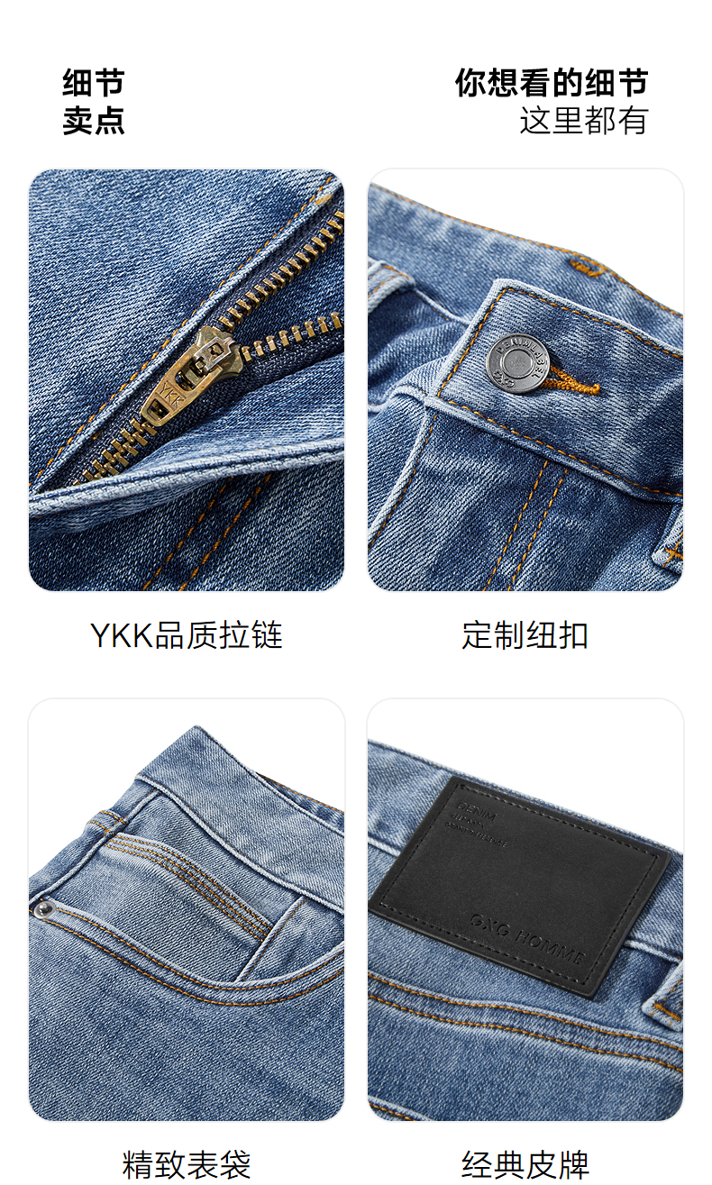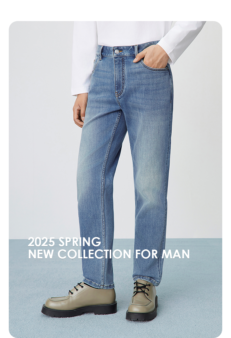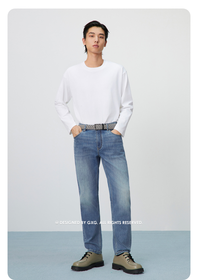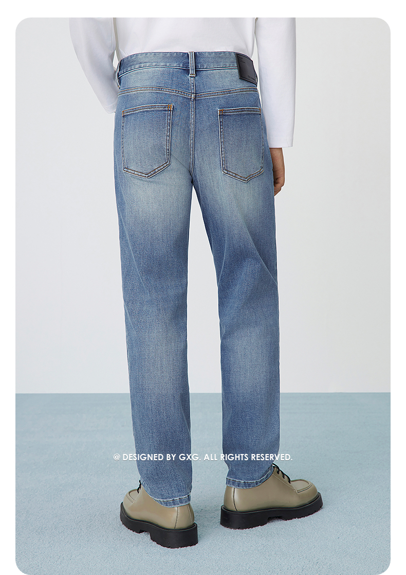 GXG男装 经典水洗蓝牛仔裤修身通勤长裤弹力男裤子 2025春季热卖
