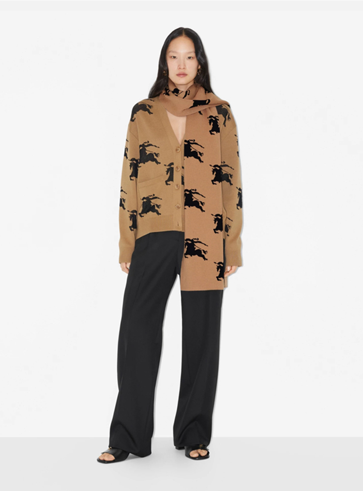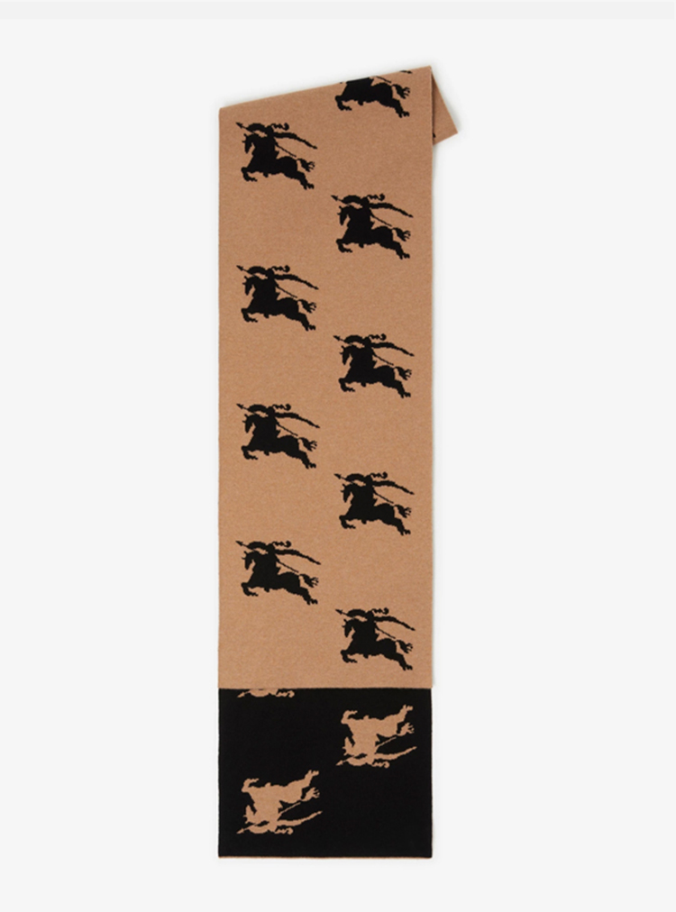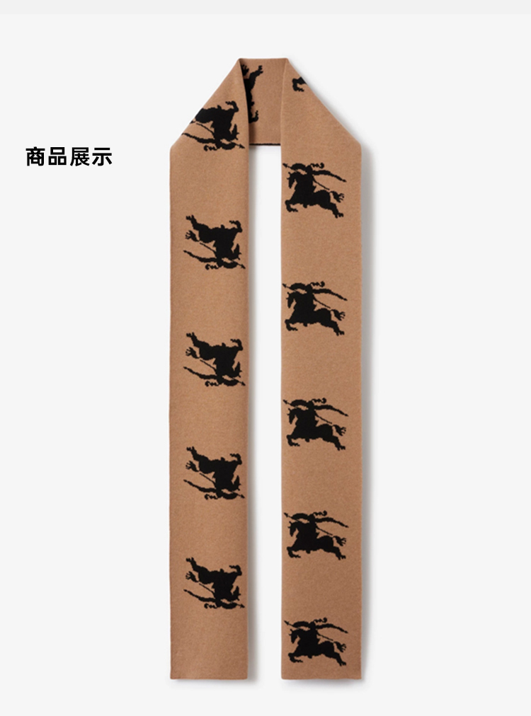 BURBERRY 巴宝莉 女士马术骑士嵌花羊绒围巾 驼色 8072080 A1420