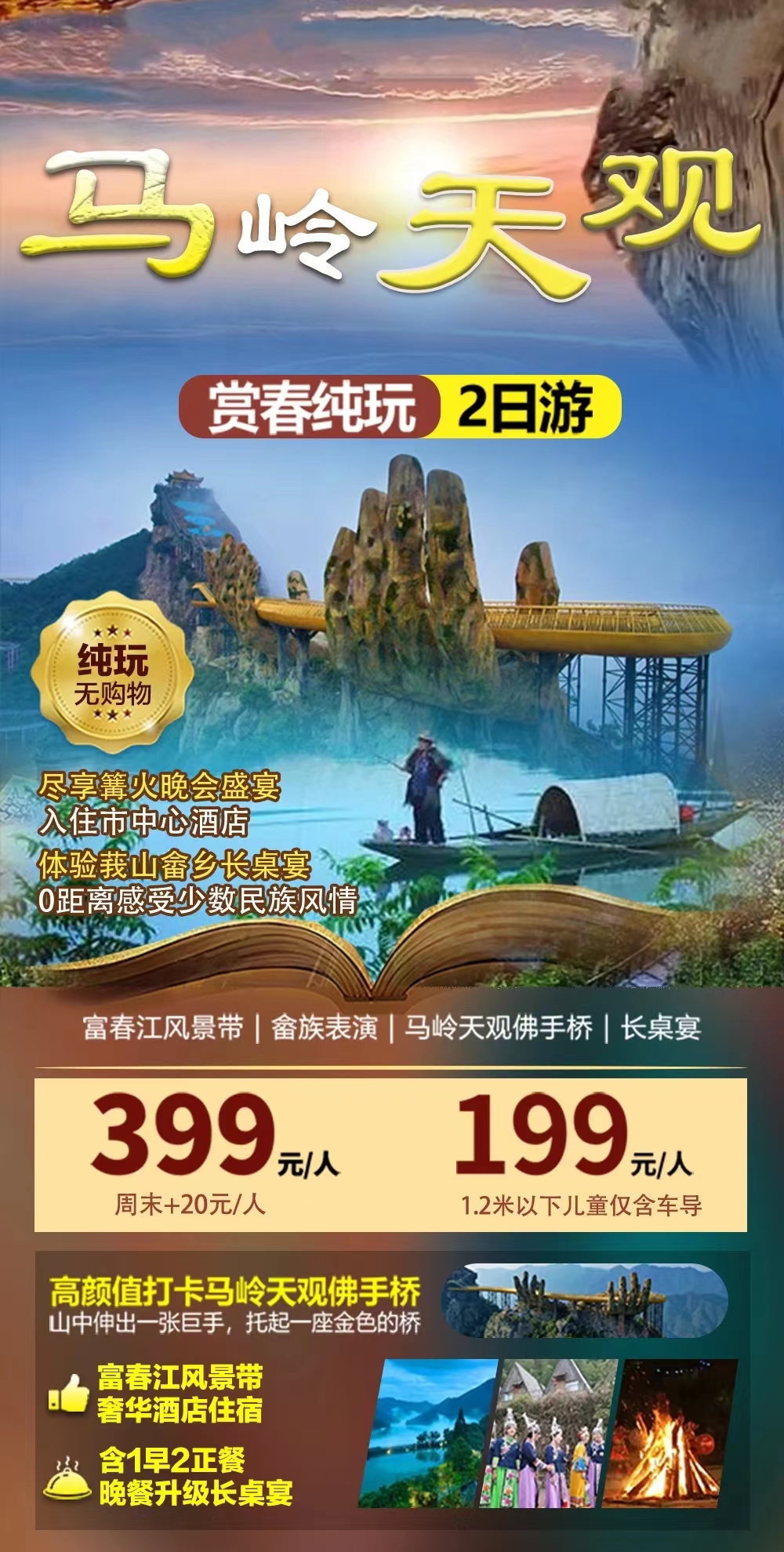 C位出道:爆款景区马岭天观佛手桥!高品质纯玩二日游399元,含1早2正,晚餐升级畲乡长桌宴,更有篝火盛宴等你嗨!