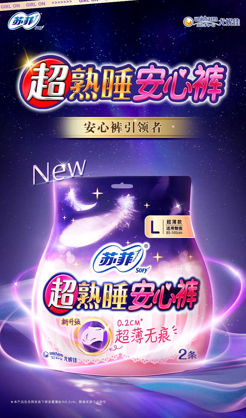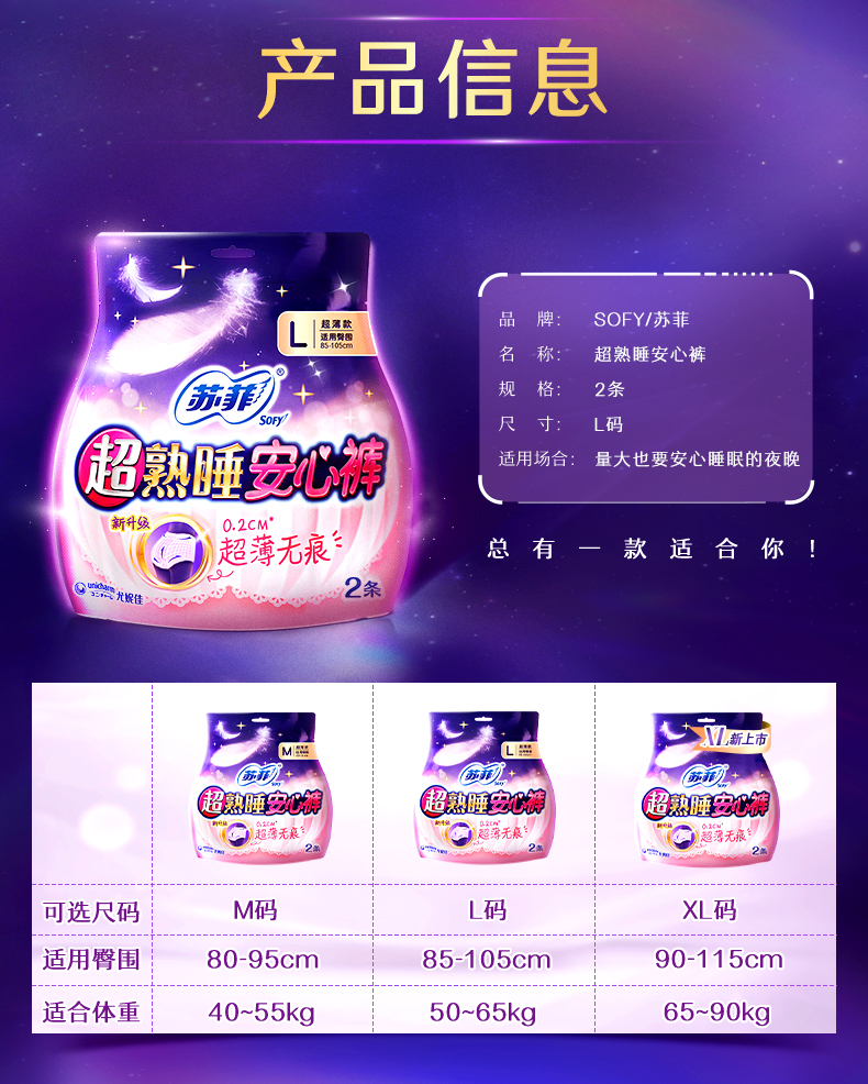 苏菲超熟睡安心裤超薄L码2片